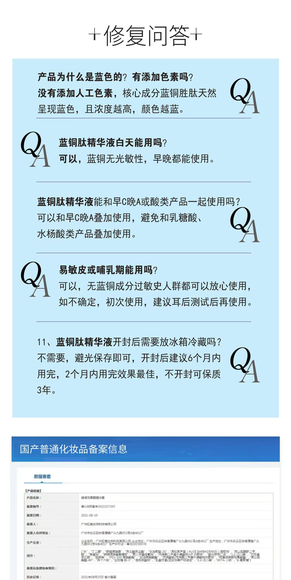 商品名称:蓝铜胜肽精华液舒缓修护面部保湿精华套淡纹紧致盒院线代加工