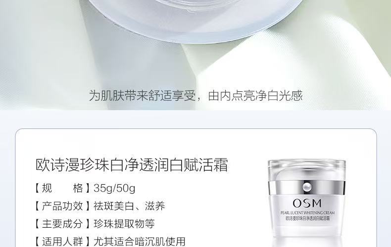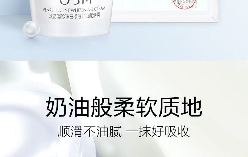 商品名称:欧诗漫珍珠白赋活霜乳液面霜美白淡斑补水保湿改善肤色提亮肤色