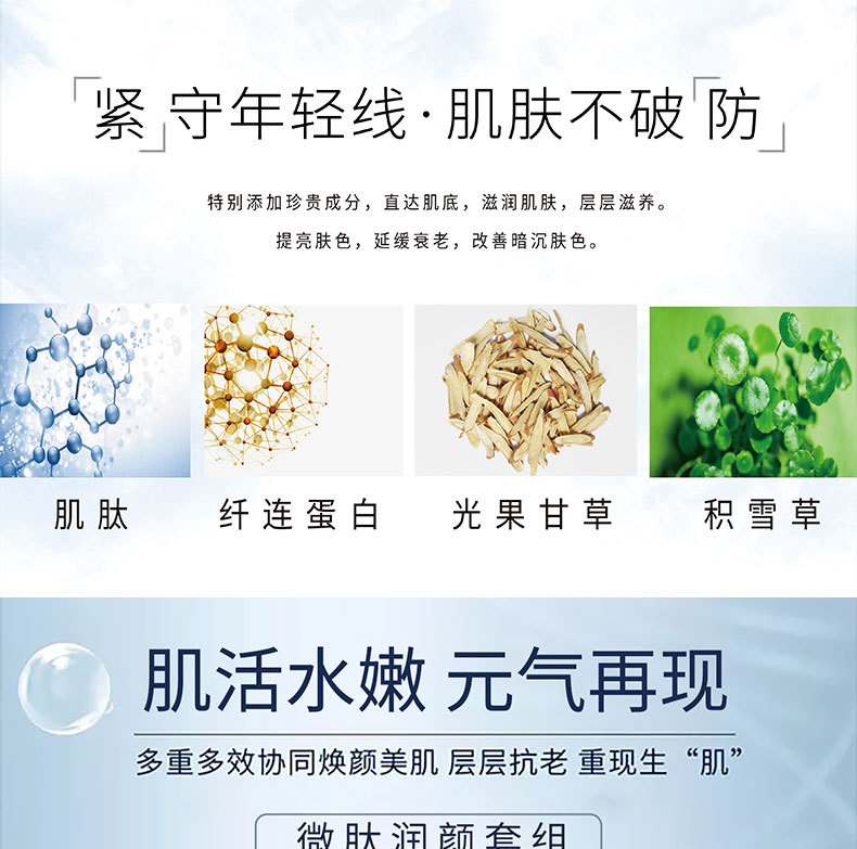 商品名称:暨大微肽润颜套组控油补水紧致保湿水光护肤套盒美容院专供代加工