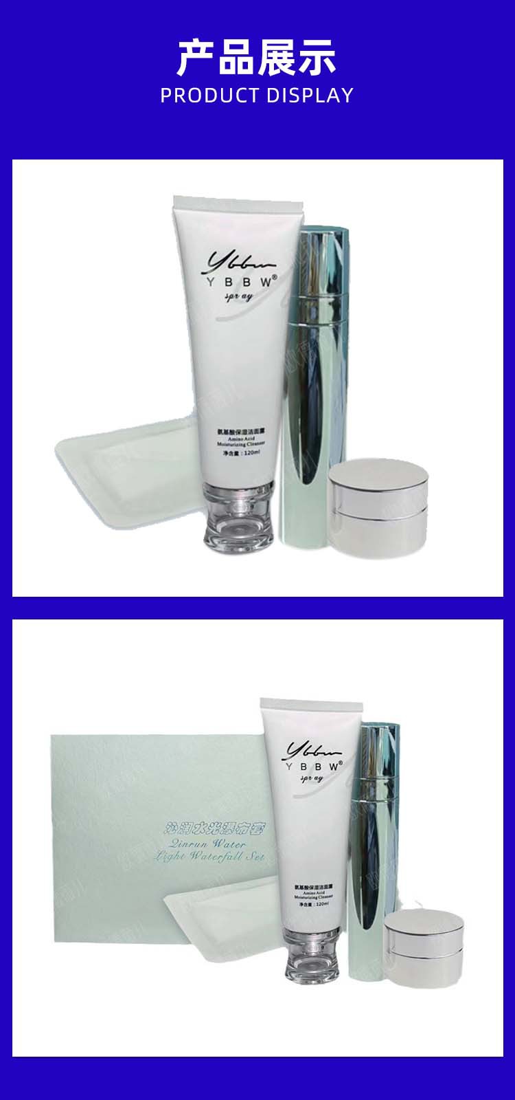 商品名称:沁润水光瀑布套OEM定制护肤洁面乳啫喱面霜面膜化妆品套装ODM加工