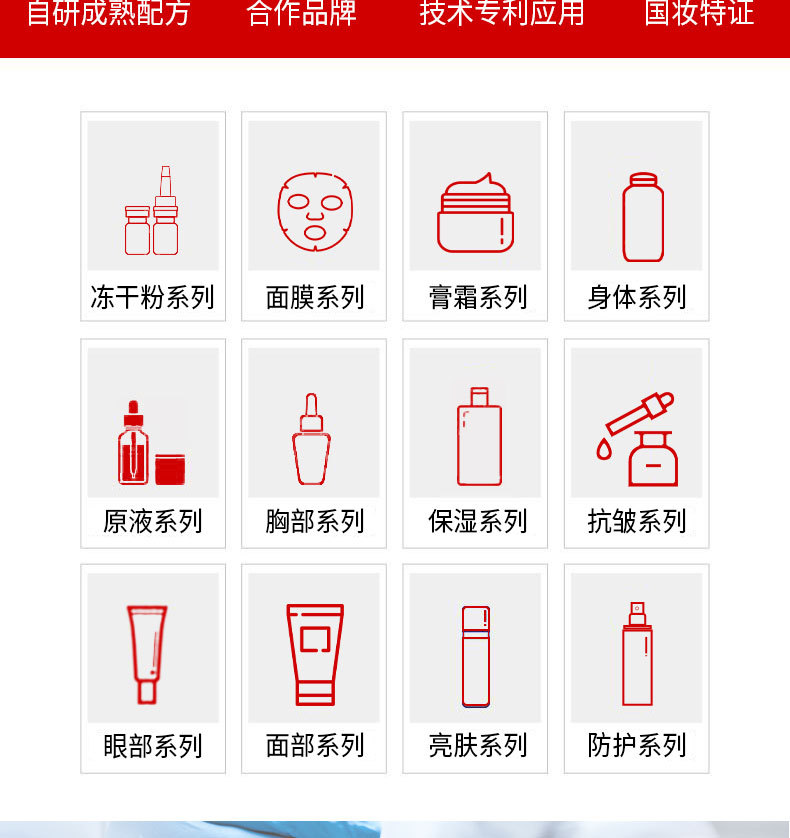 化妆品功效:美白,收缩毛孔,补水保湿,提亮肤色,祛斑,滋润,紧致,舒缓肌肤,柔润肌肤