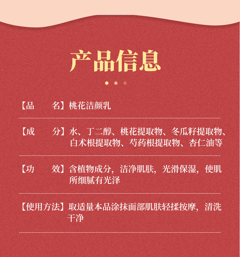 商品名称:院线专供护肤品洁面乳植物萃取桃花洁颜乳男女通用植物萃取洗面奶