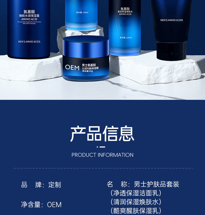 商品名称:定制男士护肤品5件套滋养保湿补水洁面家日用洗护组合OEM广州厂家