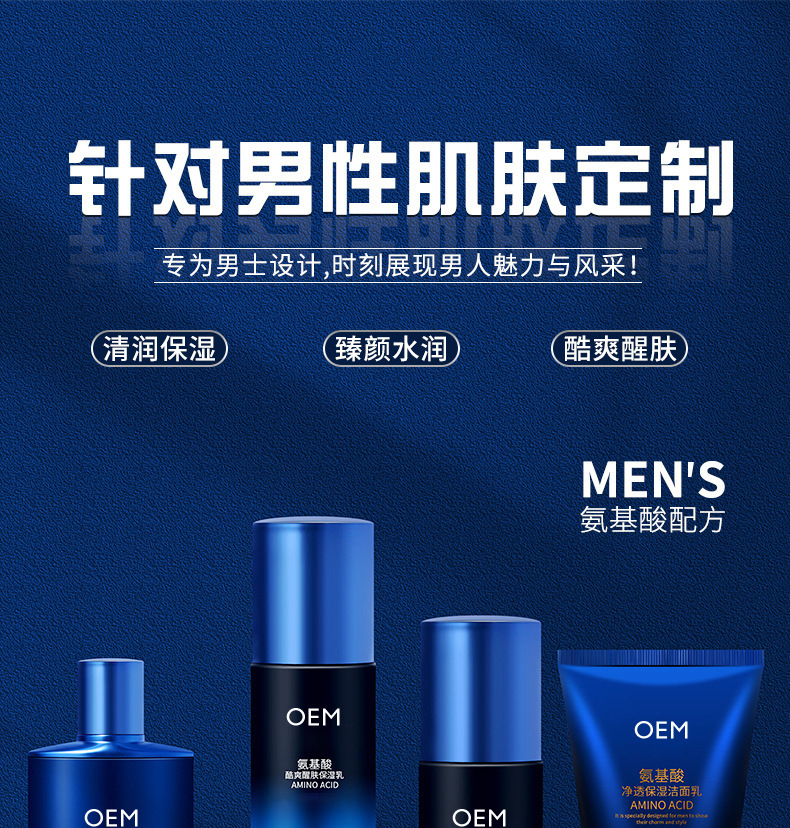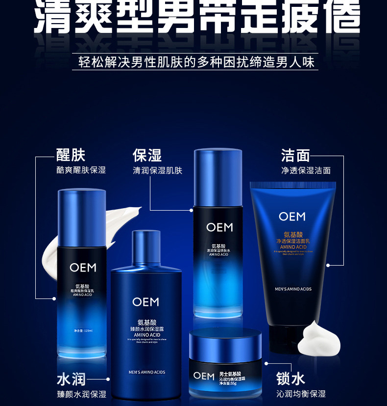 定制男士护肤品5件套滋养保湿补水洁面家日用洗护组合OEM广州厂家
