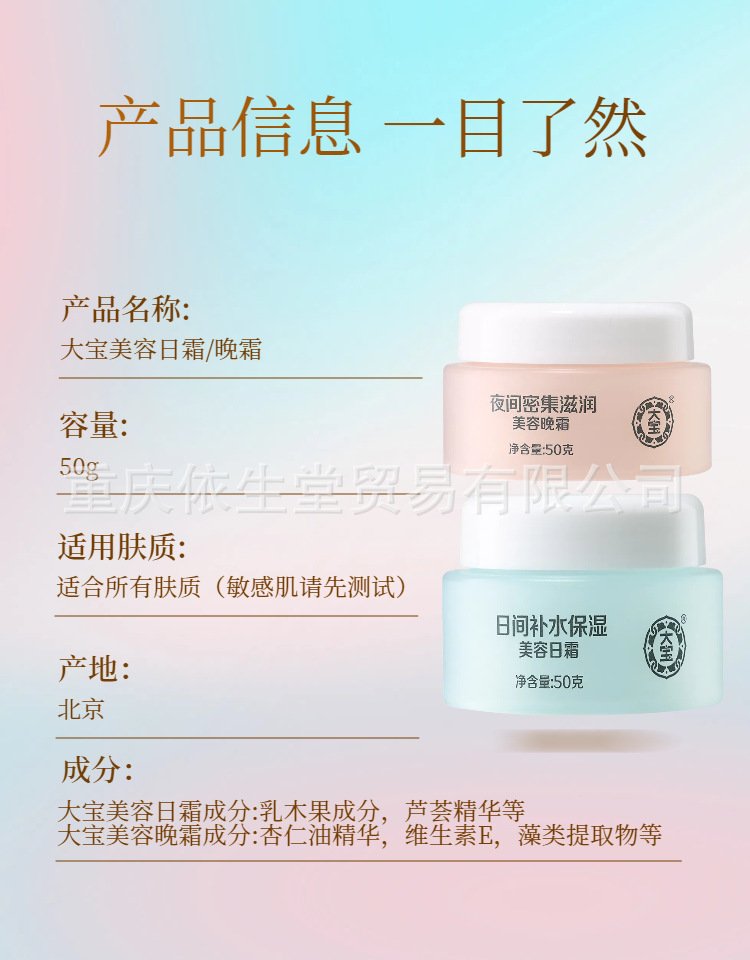 商品名称:大宝美容日霜50g,大宝美容晚霜50g,补水保湿面霜润肤改善粗糙
