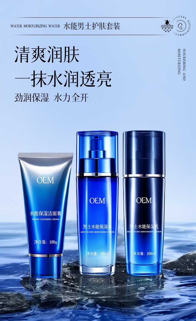 商品名称:护肤套盒小批量贴牌生产定制 男士控油水润透亮面部护理套装OEM