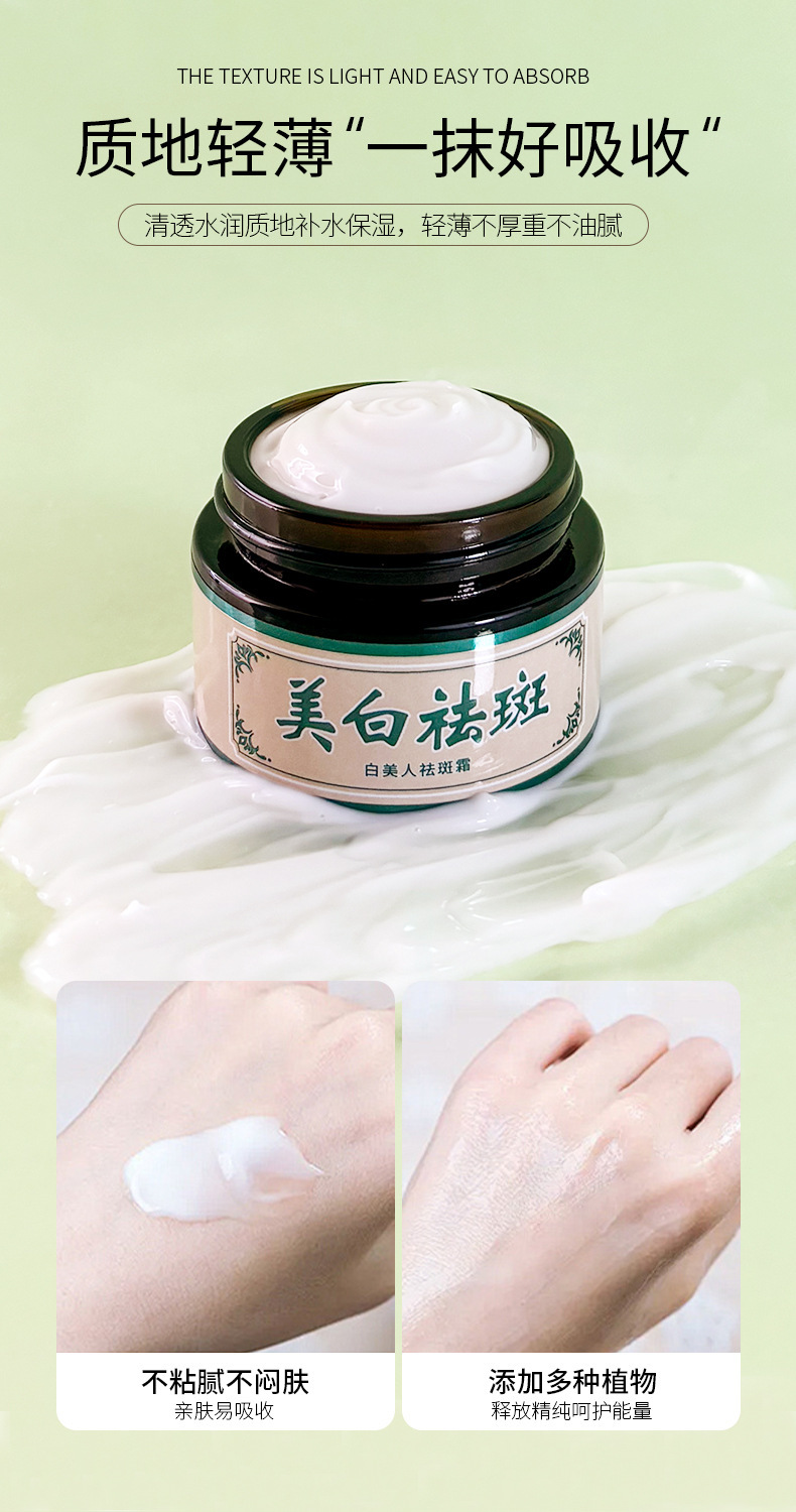 商品名称:白美人美白祛斑霜淡化黑色素改善肌肤补水保湿面霜暗沉提亮肤色