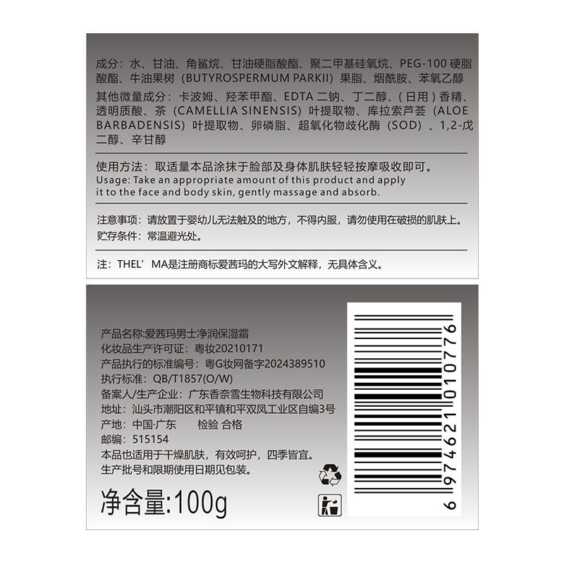 商品名称:爱茜玛男士面霜100g补水秋冬季保湿霜护肤品脸部滋润乳液擦脸
