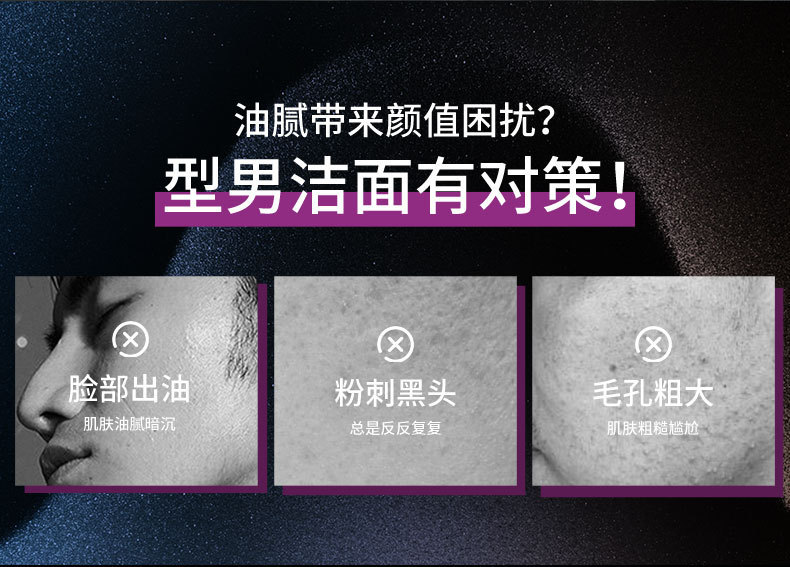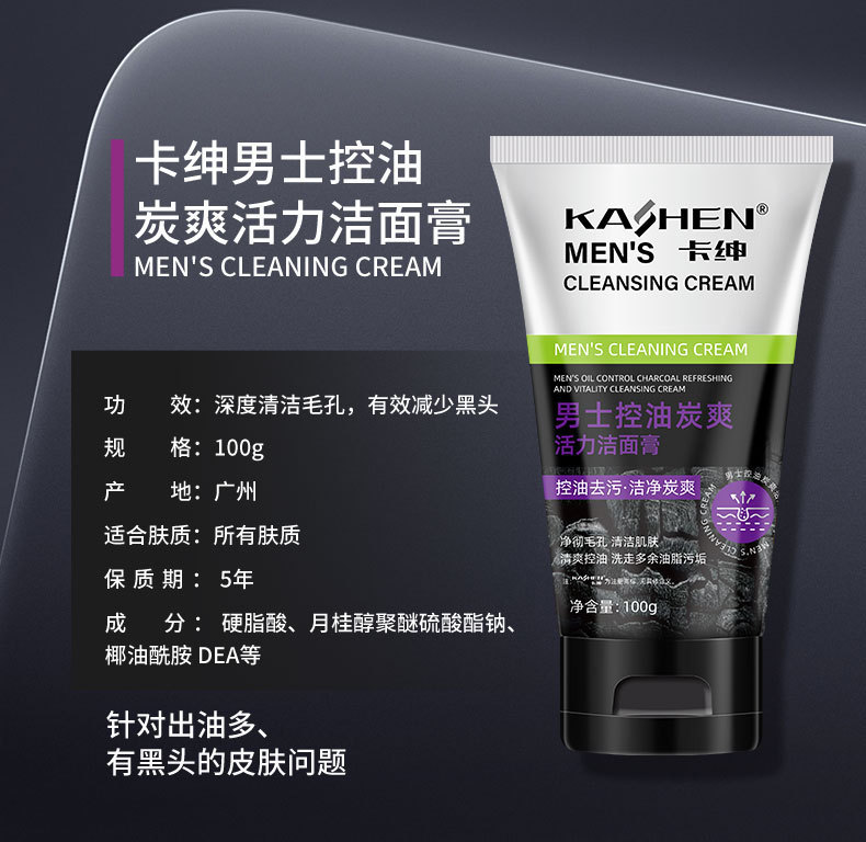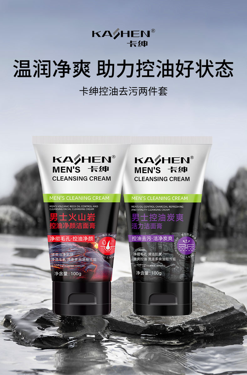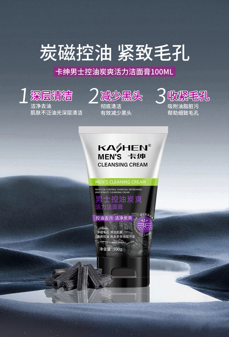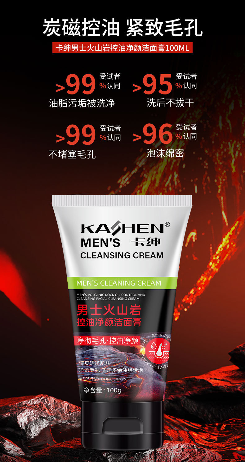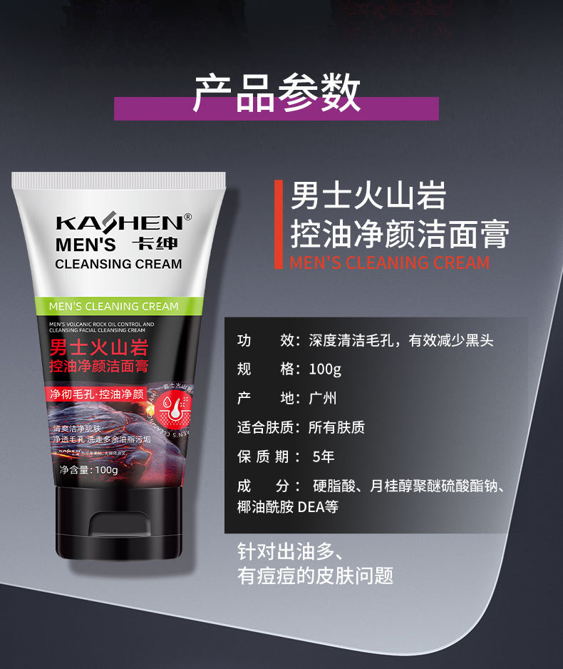 商品名称:卡绅男士火山泥酷爽洁面乳补水淡痘印去黑头专用洁面乳护肤品厂家