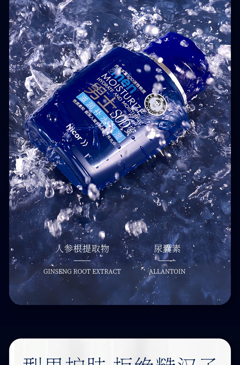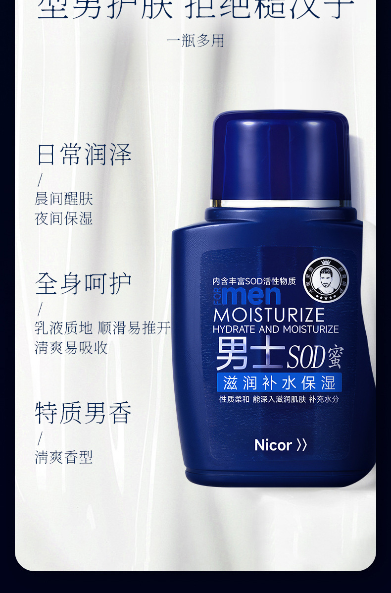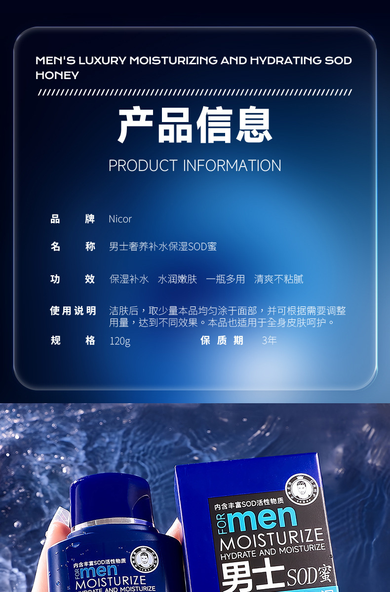 商品名称:Nicor男士SOD蜜保湿面霜护肤乳液润肤霜补水擦脸霜一件代发厂家