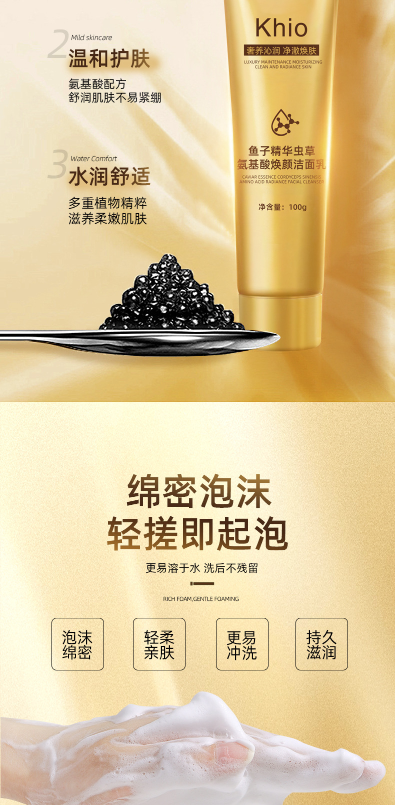 鱼子精华虫草氨基酸洁面乳正品男女通用洗面奶去油面部清洁代发