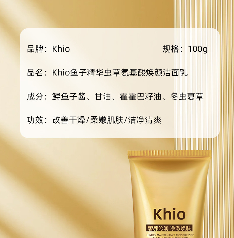 商品名称:鱼子精华虫草氨基酸洁面乳正品男女通用洗面奶去油面部清洁代发