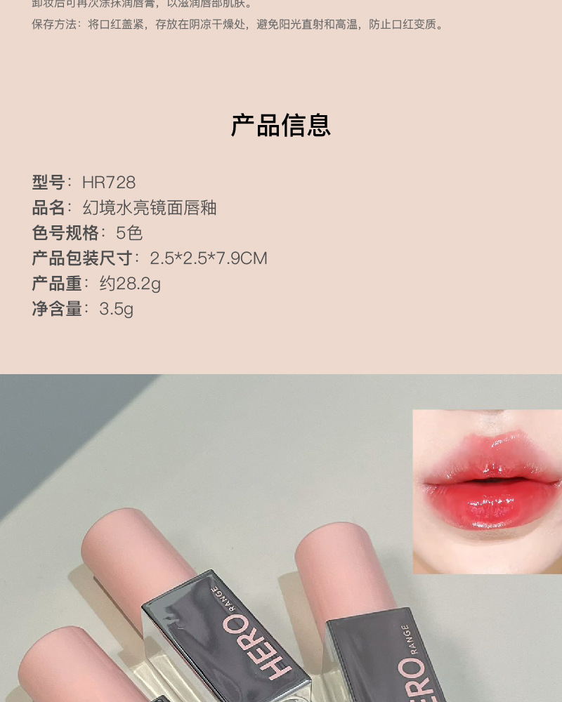 商品名称:HERORANGE幻境水亮镜面唇釉显白裸色镜面水光持久易上色嘟嘟唇釉