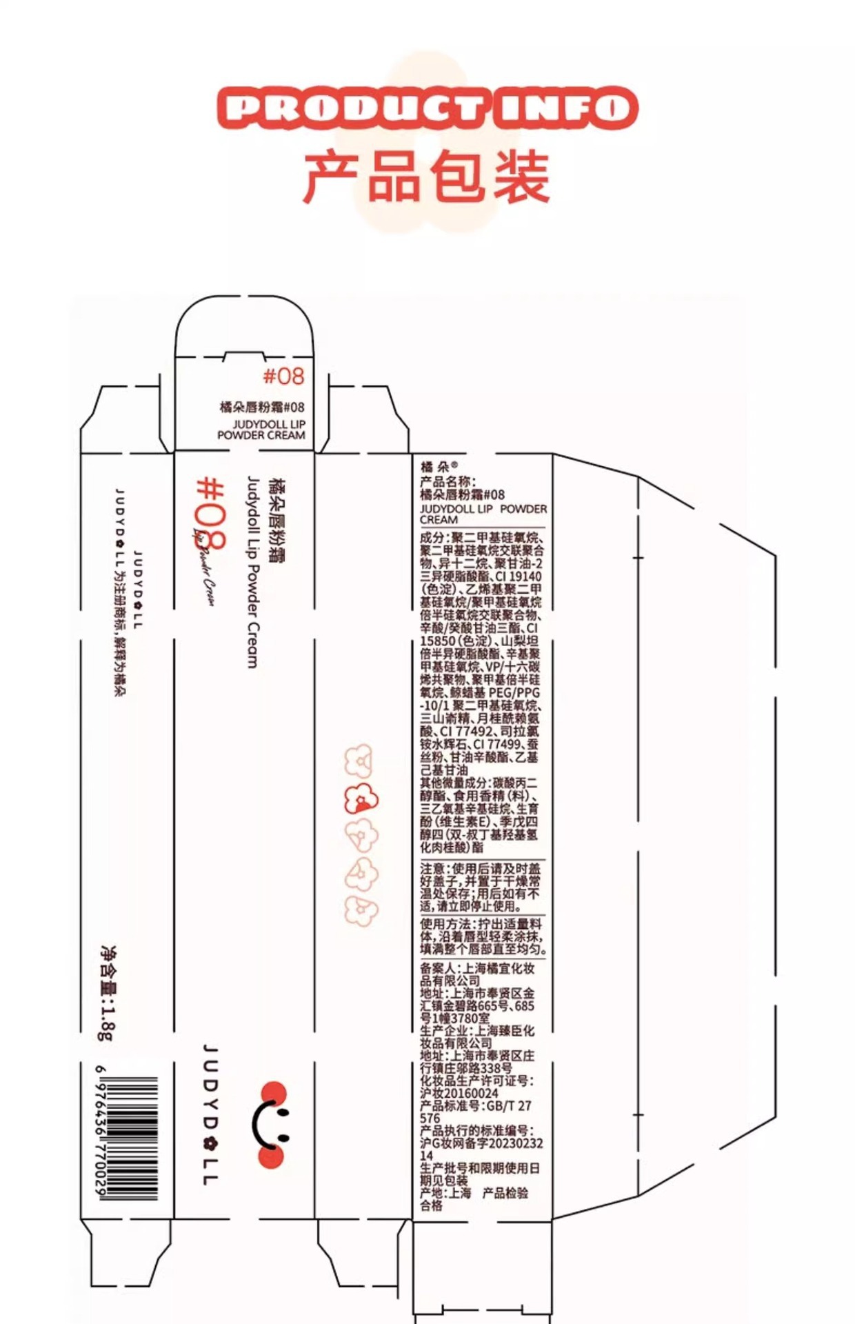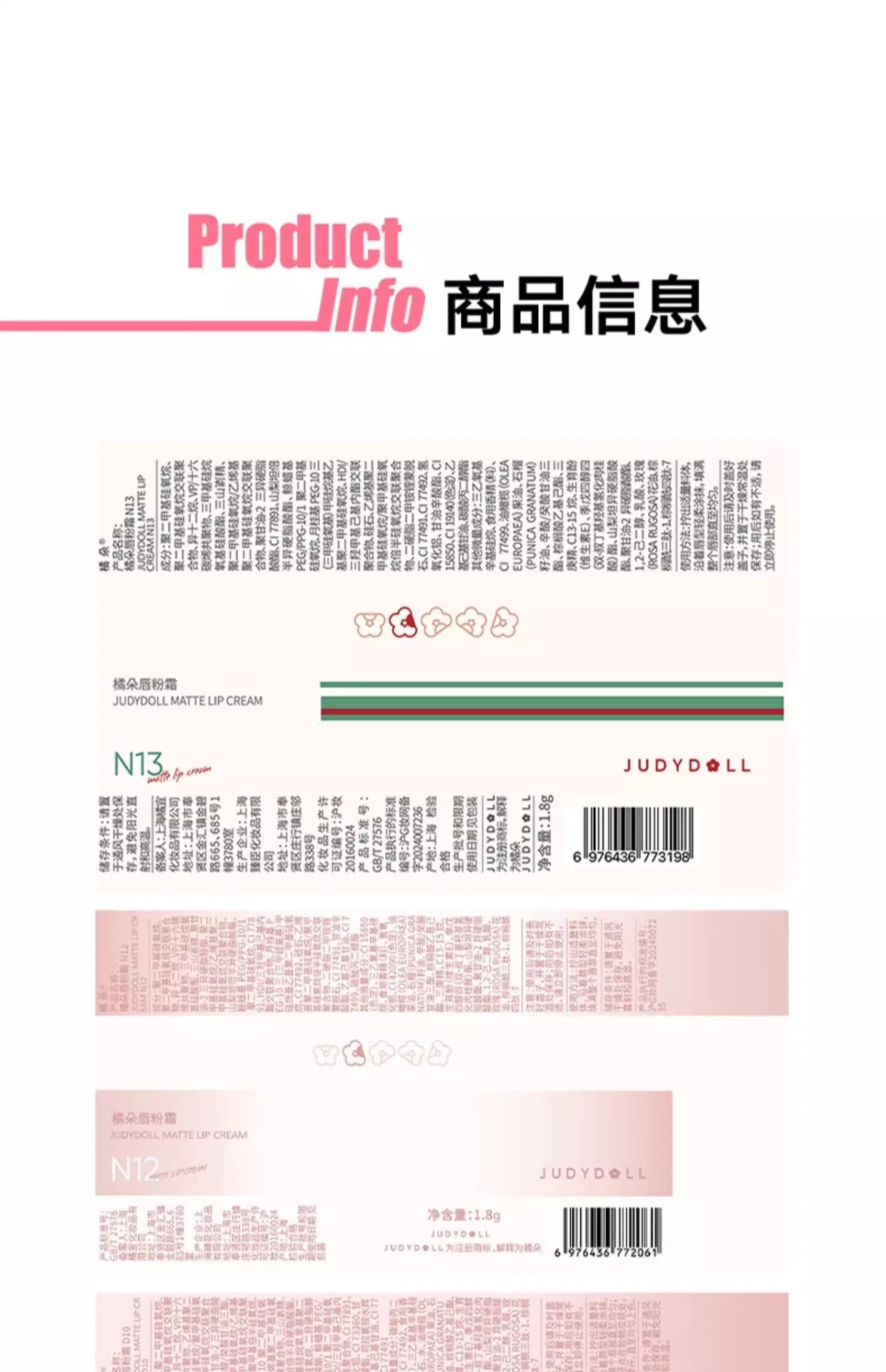 商品名称:Judydoll橘朵唇粉霜气垫唇泥不易沾杯显白雾面哑光唇釉N05口红