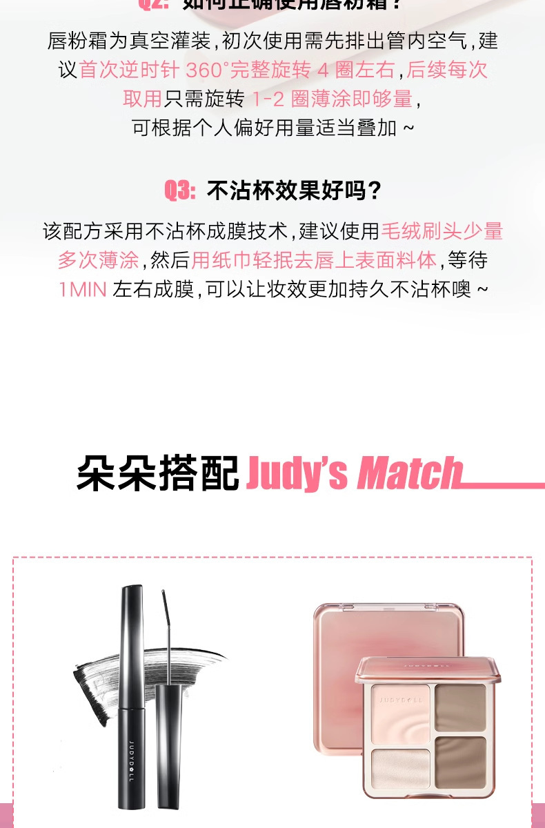 Judydoll橘朵唇粉霜气垫唇泥不易沾杯显白雾面哑光唇釉N05口红