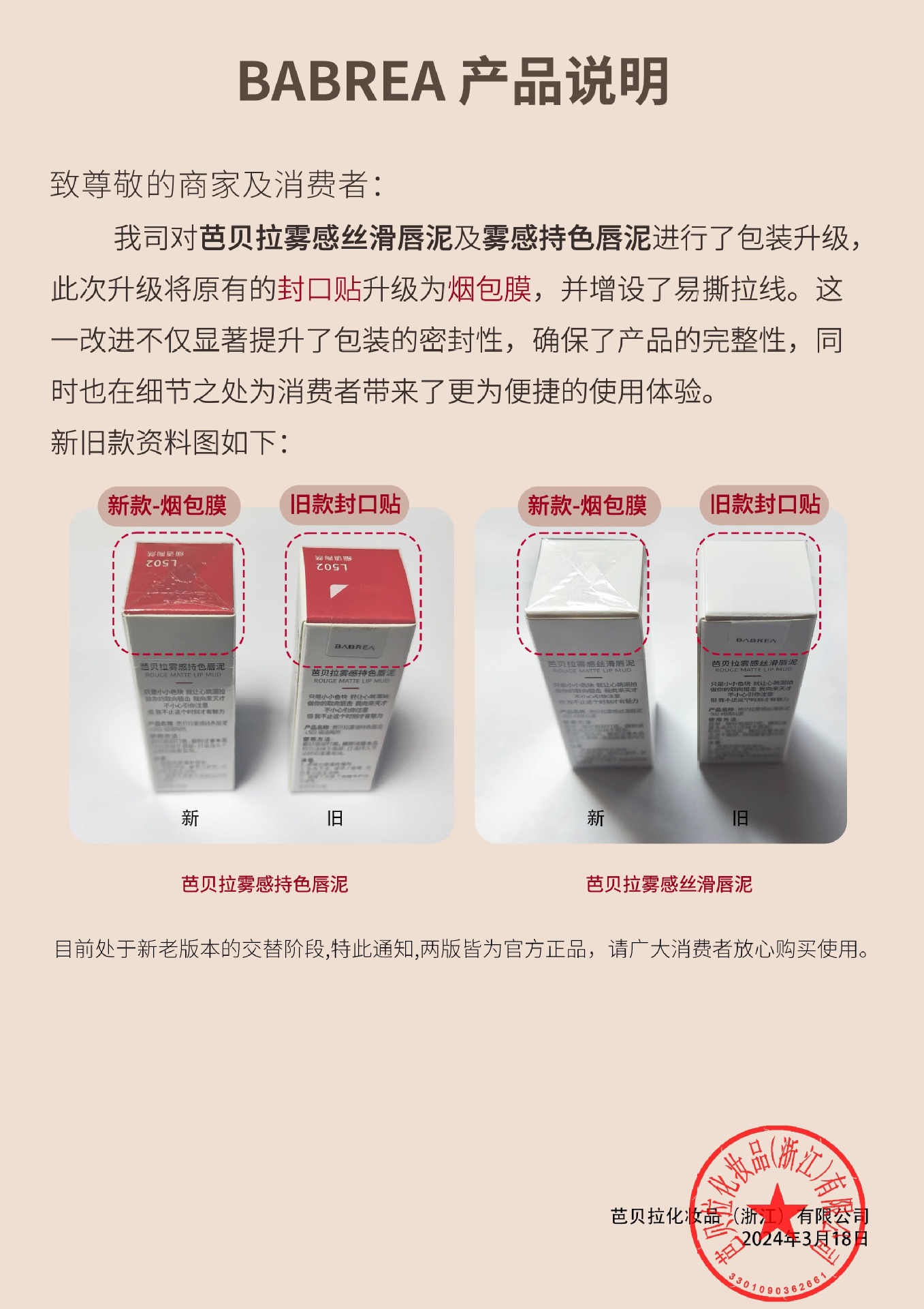 芭贝拉唇泥显色持妆丝绒口红哑光雾面百搭不挑皮学生唇颊两用唇泥