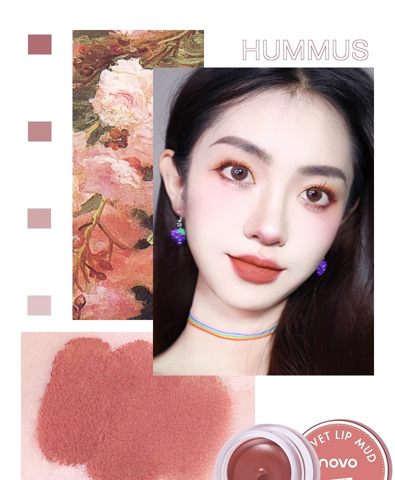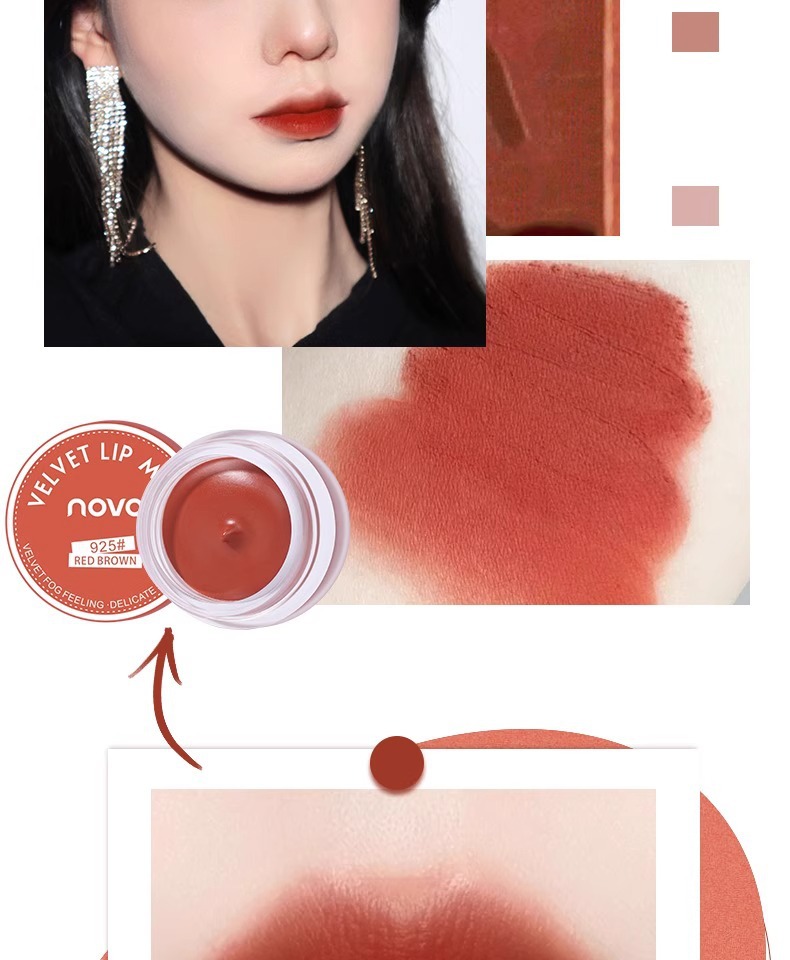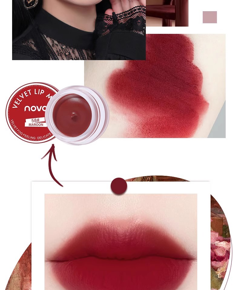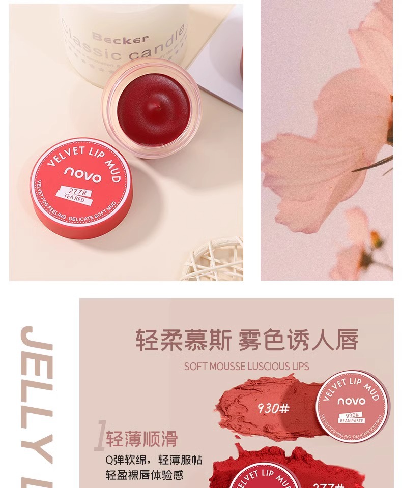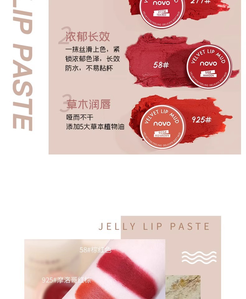 novo口红唇釉唇泥不沾杯哑光不掉色新款唇泥罐58果冻唇膏豆沙色