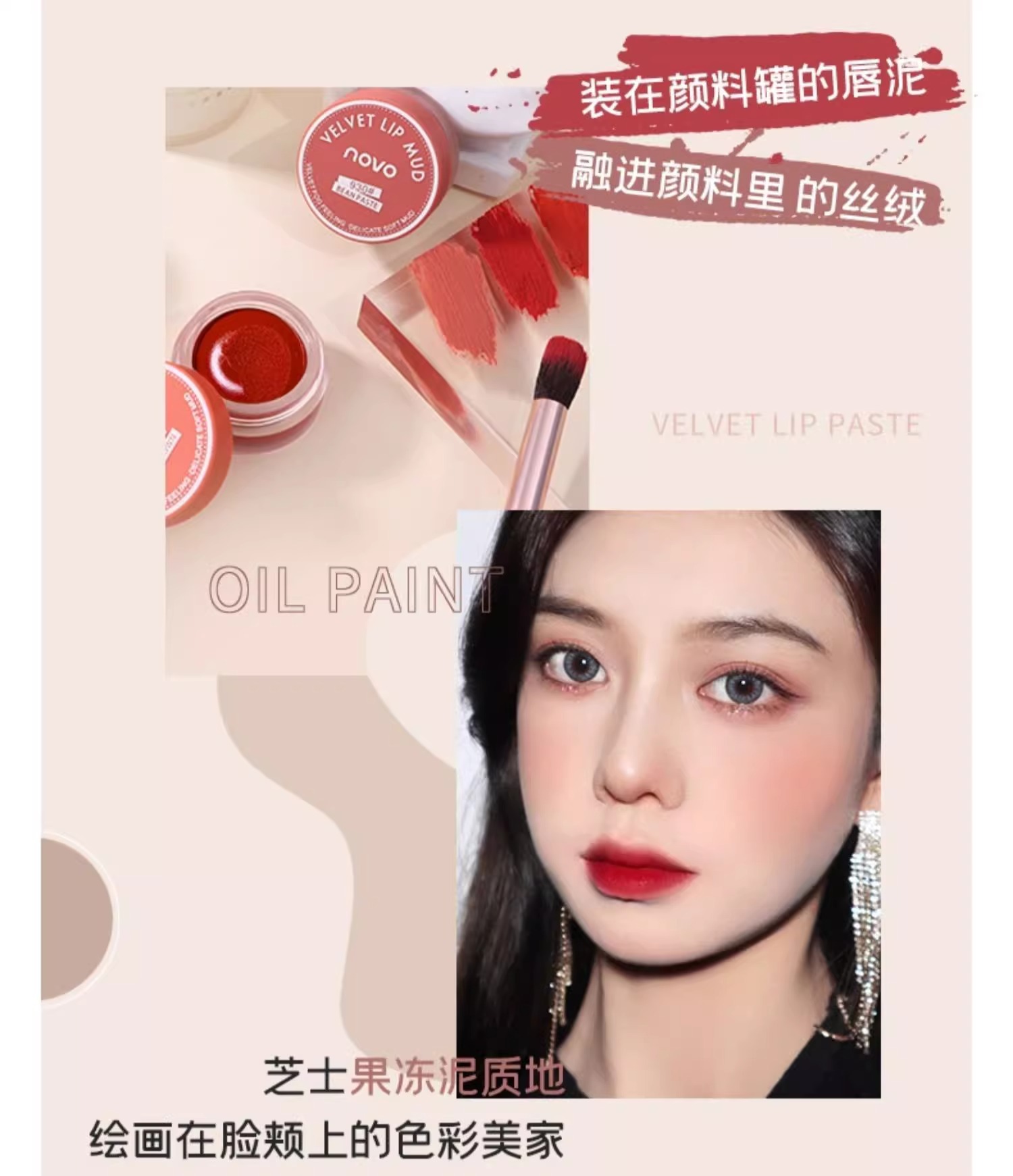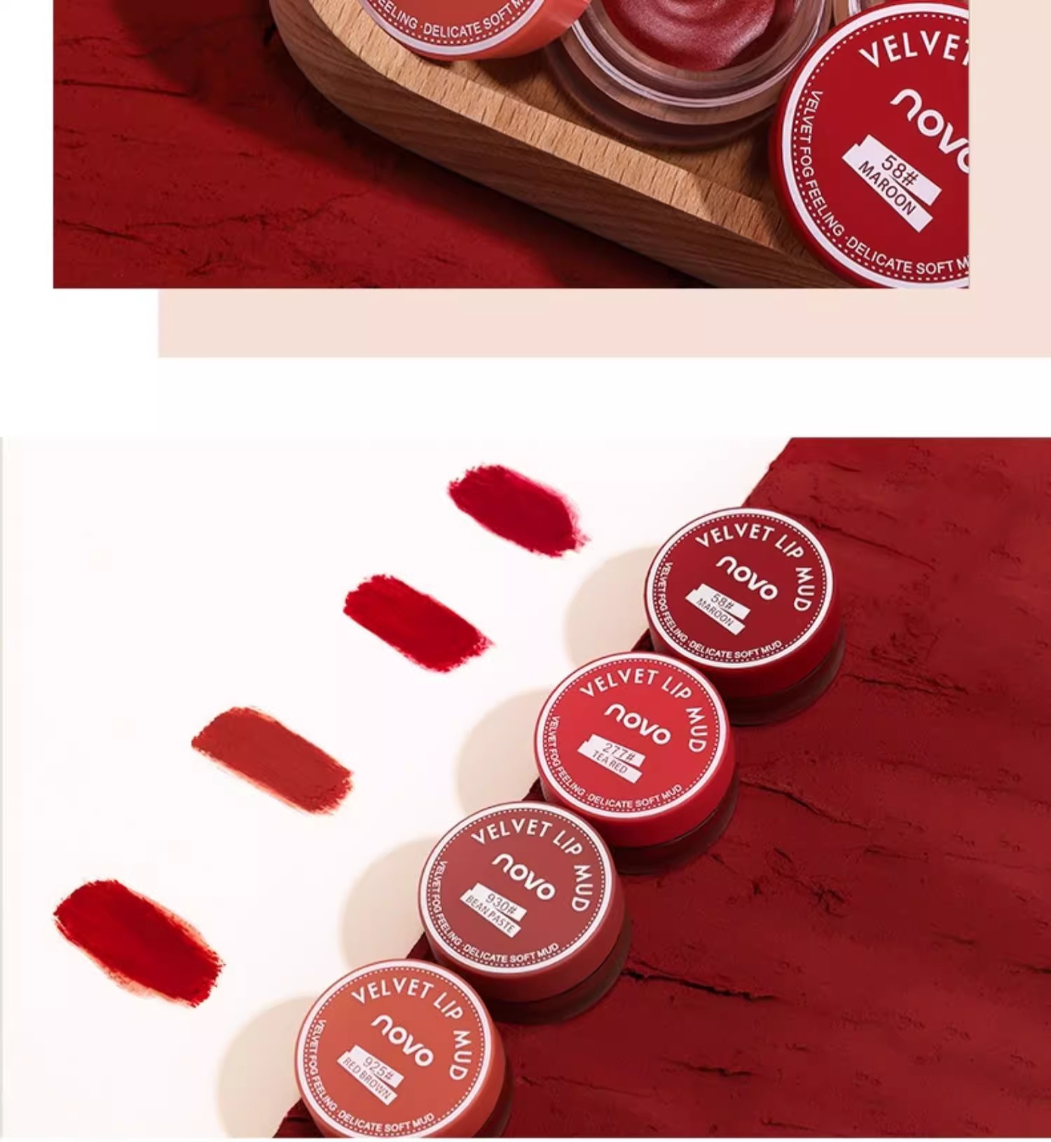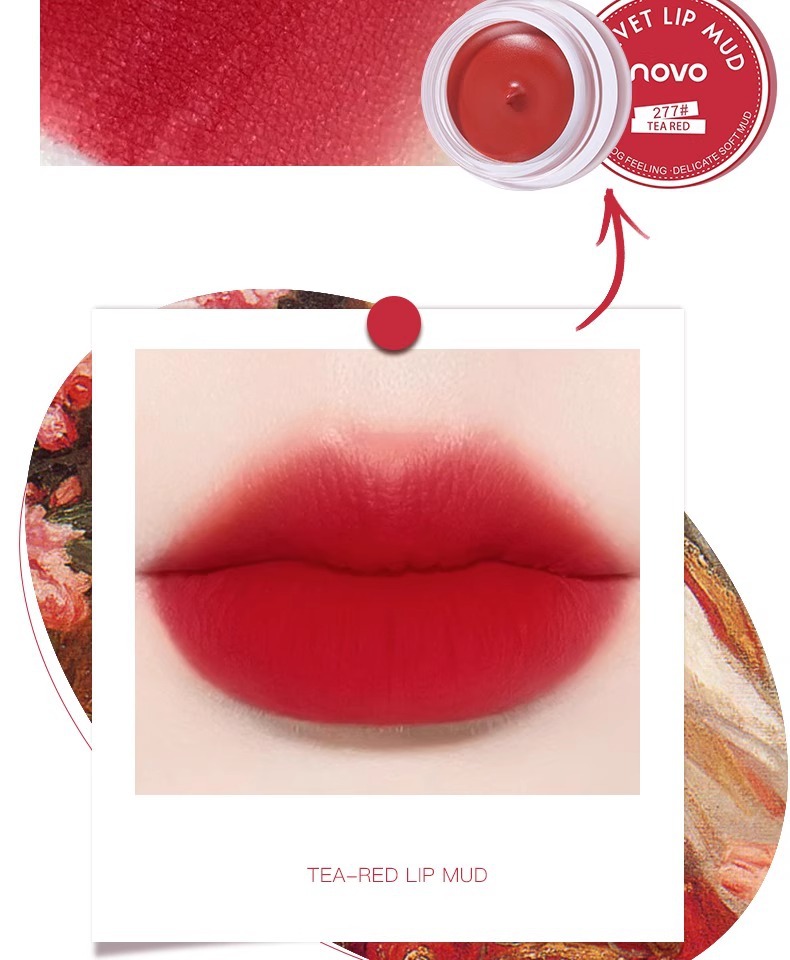 novo口红唇釉唇泥不沾杯哑光不掉色新款唇泥罐58果冻唇膏豆沙色