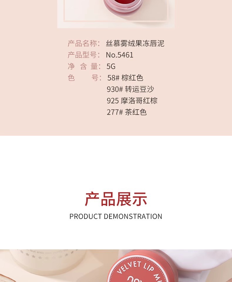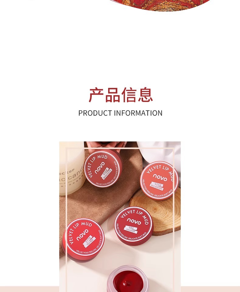 商品名称:novo口红唇釉唇泥不沾杯哑光不掉色新款唇泥罐58果冻唇膏豆沙色
