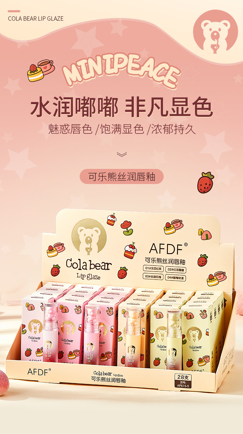 商品名称:AFDF可乐熊可爱镜面唇釉嘟嘟唇镜面水光唇蜜淡化唇纹滋润口红学生