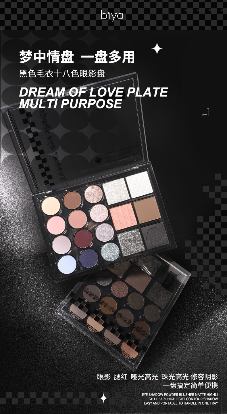 比雅黑色毛衣十八色眼影盘珠光哑光大地色眼影烟熏妆持修J