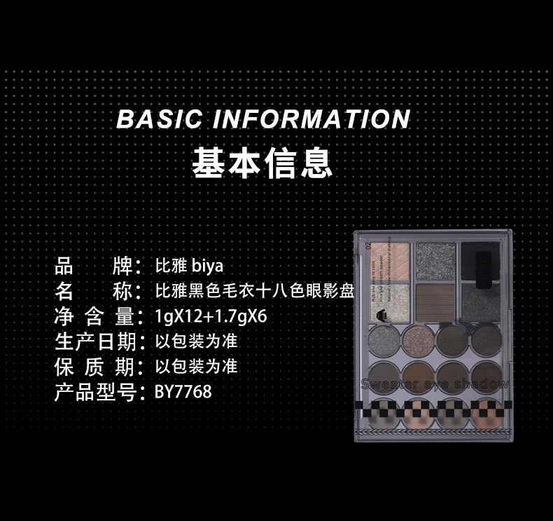 商品名称:比雅黑色毛衣十八色眼影盘珠光哑光大地色眼影烟熏妆持修J