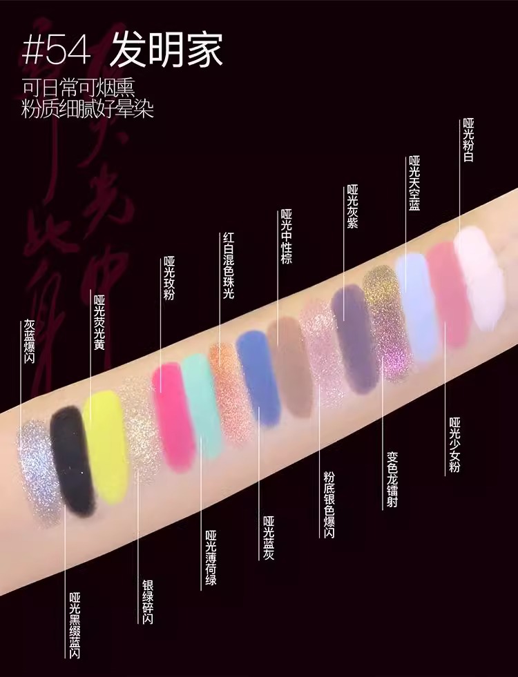 包装种类:基础包装颜色分类:15色全哑光眼影盘-如荼11g(李泽老师推荐) 15色眼影盘-发明家11g(妮可三三推荐)化妆品备案编号/注册证号:沪G妆网备字2023023001