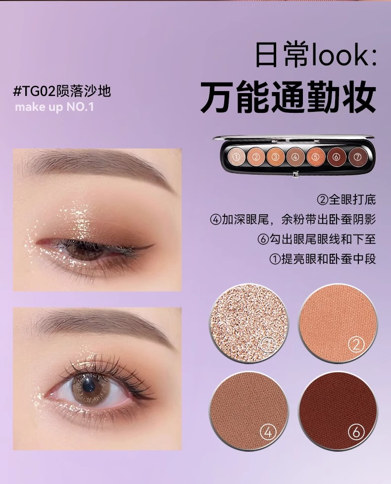 商品名称:卞卡花曜七色眼影盘持妆显色一体眼影盘百搭日常大地眼影盘修容