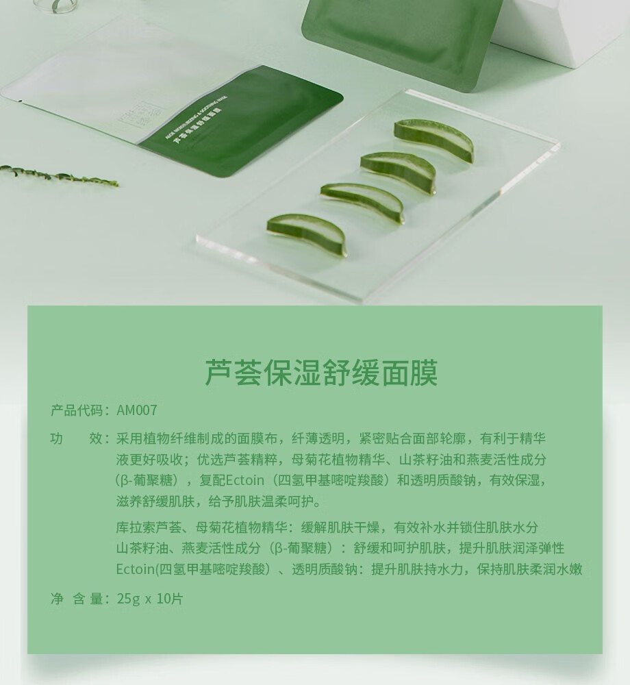 产品名称:完美臻荟芦荟保湿舒缓面膜