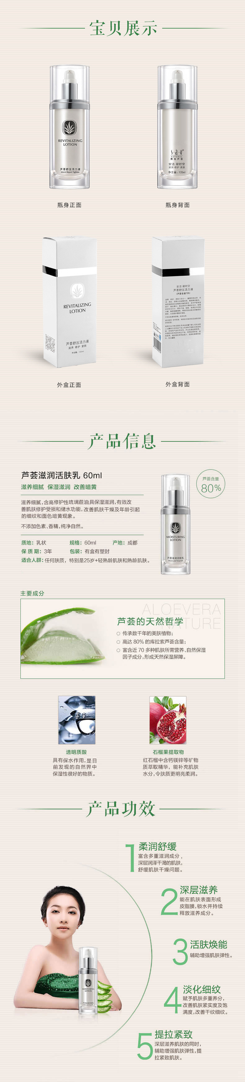 化妆品功效:其他功效,滋润,紧致