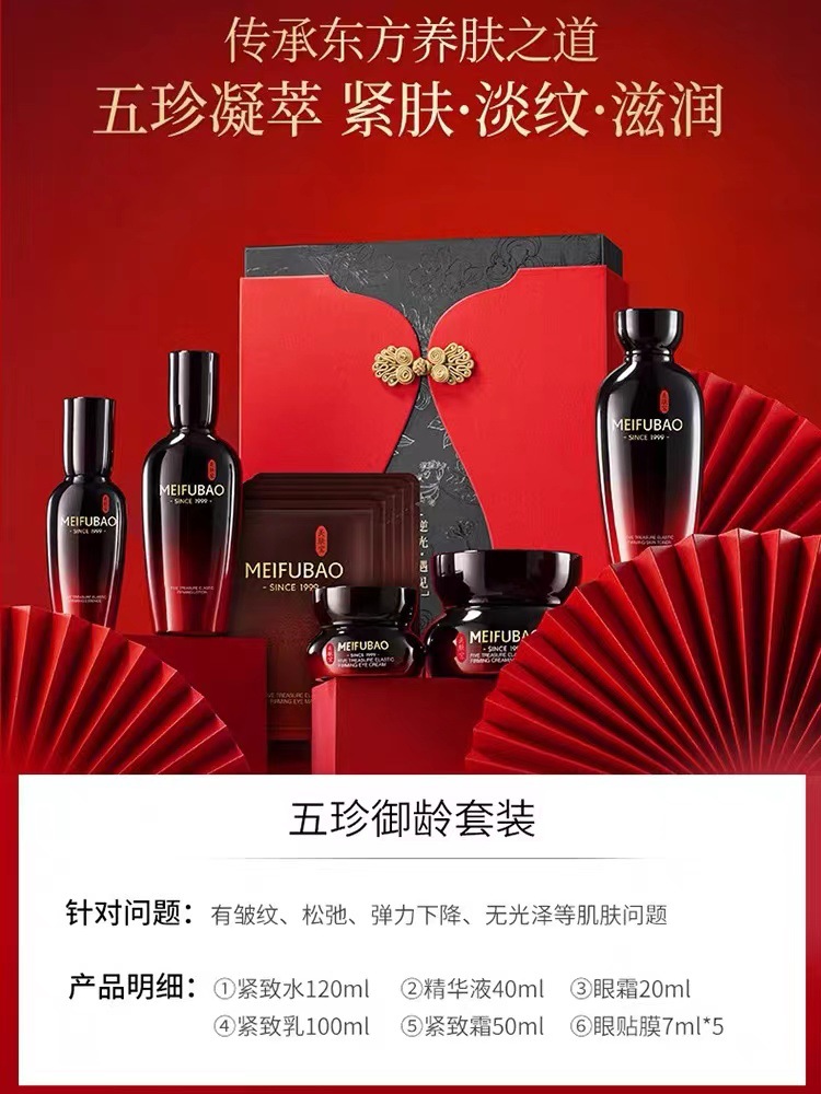 商品名称:美肤宝五珍弹力礼盒提拉紧致紧致滋润水乳套装补水保湿护肤品正品