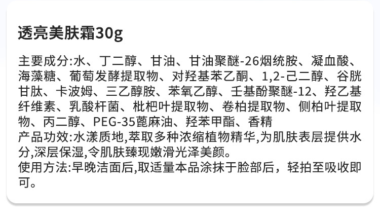 商品名称:伊尔娜美透亮美肤霜50g美容院护肤品一件代发