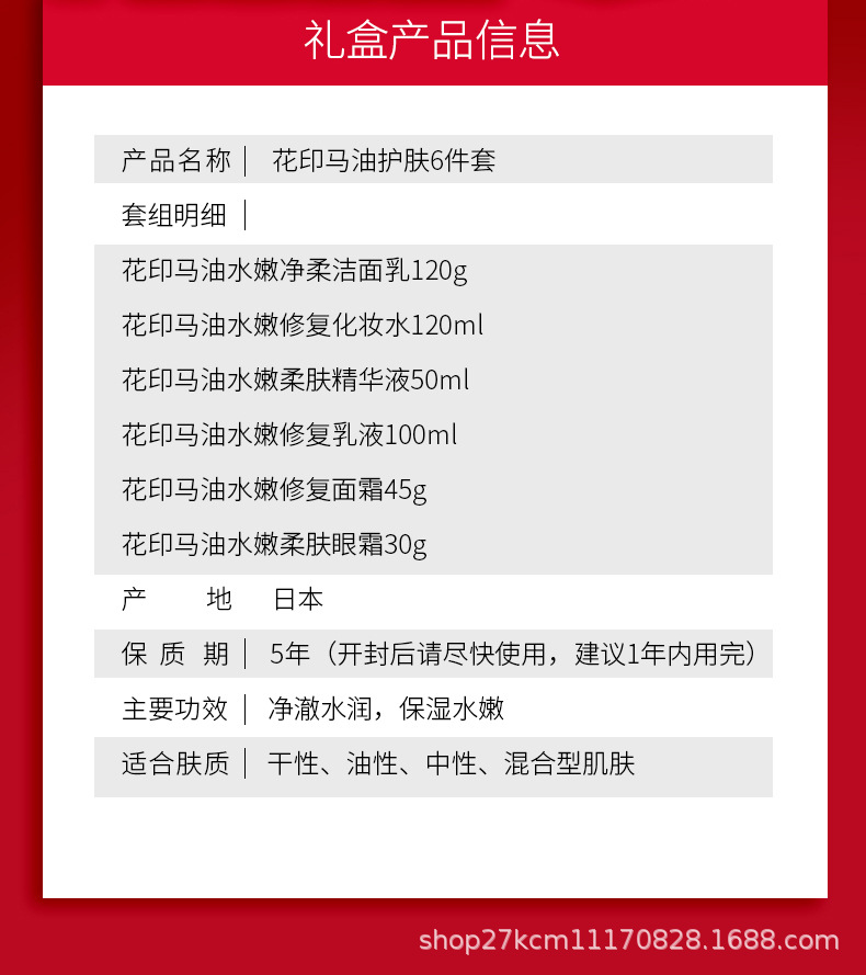 产品名称:花印马油水嫩柔肤礼盒