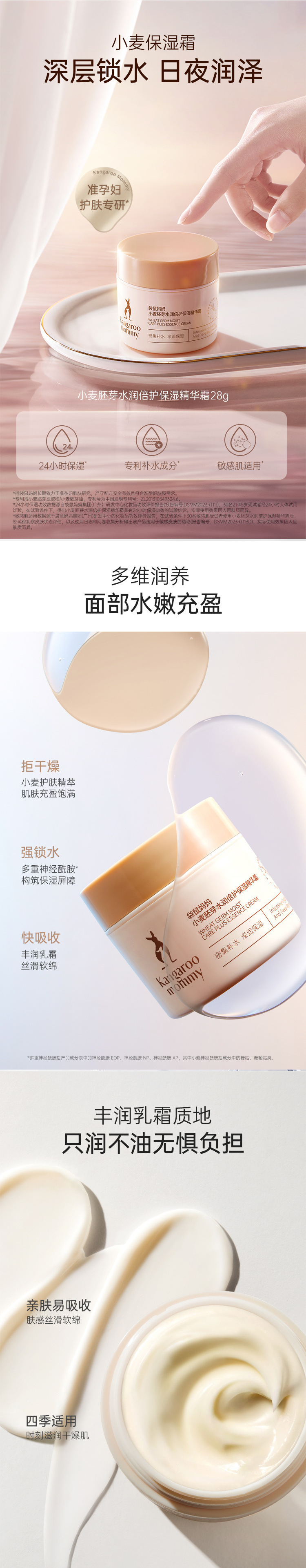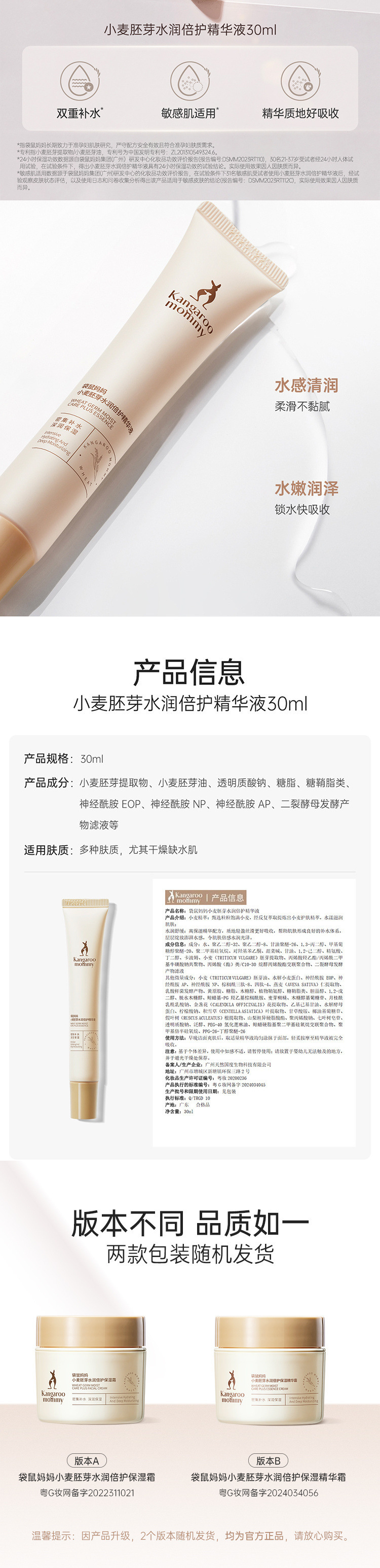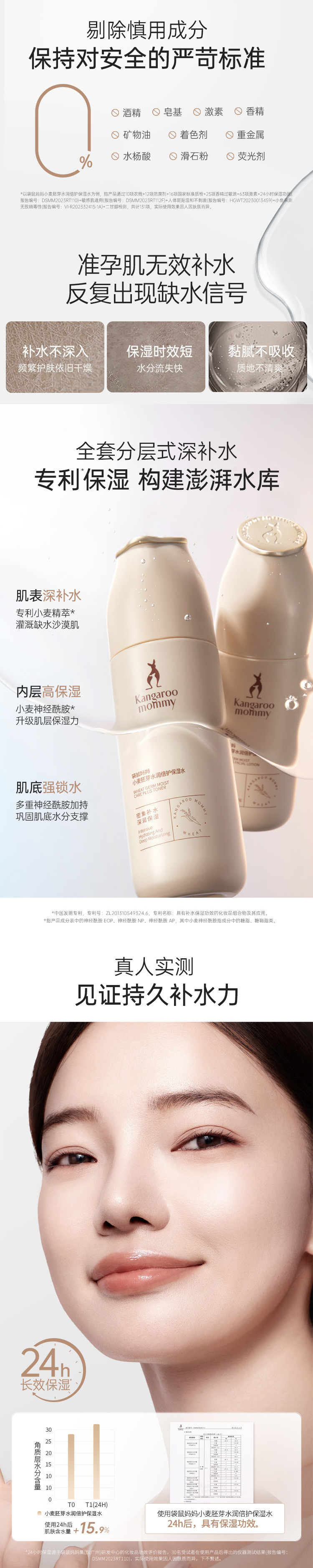 商品名称:袋鼠妈妈小麦水润倍护深补水高保湿水乳套装准孕妇护肤品肌肤