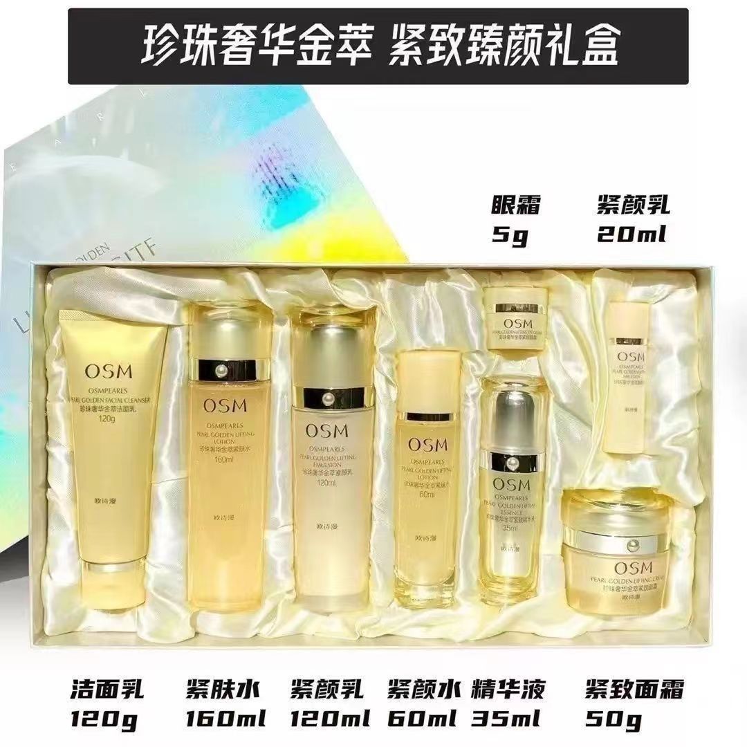 OSM欧诗漫珍珠白透白焕彩皙颜礼盒八件套洁水乳精华霜眼霜护肤品