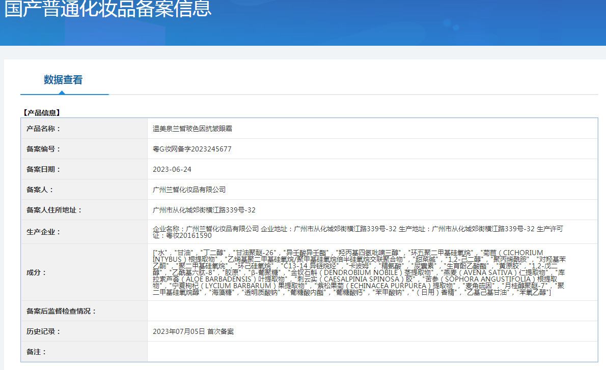 特殊用途化妆品证号:国妆特字G20213116