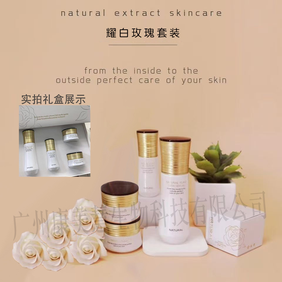 耀白玫瑰套盒jin致抗摔补水保湿提亮肤色乳液日晚霜护肤品套装