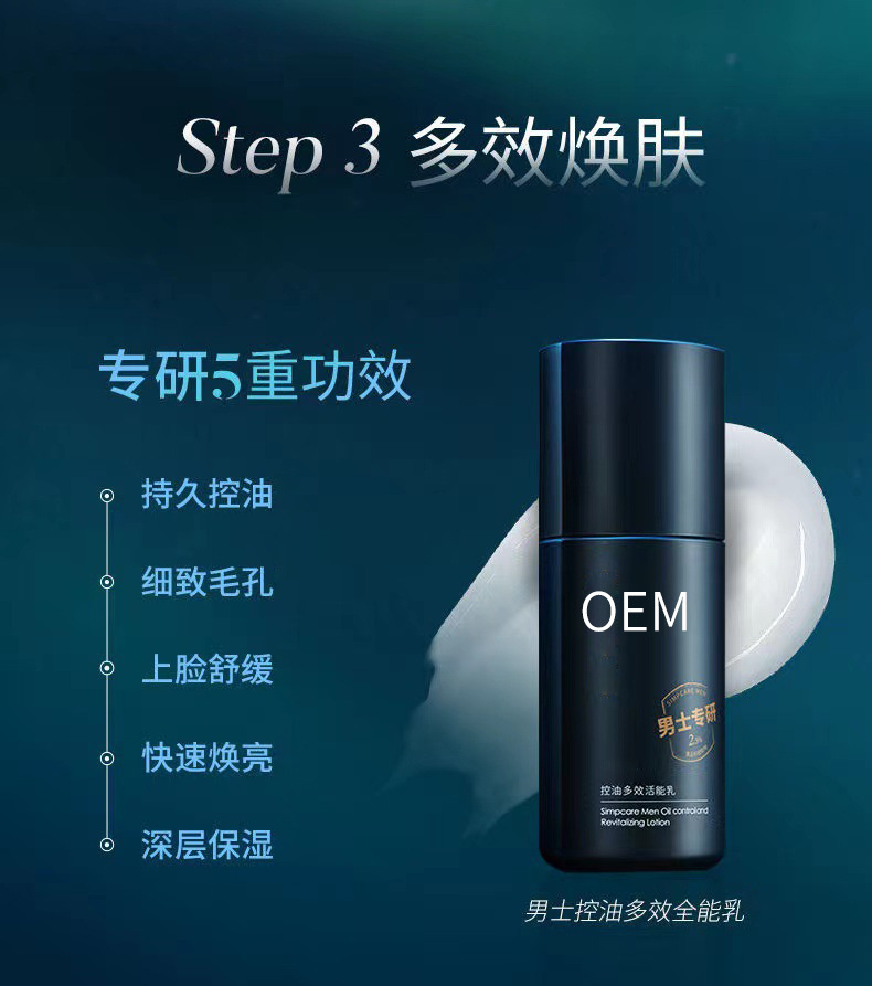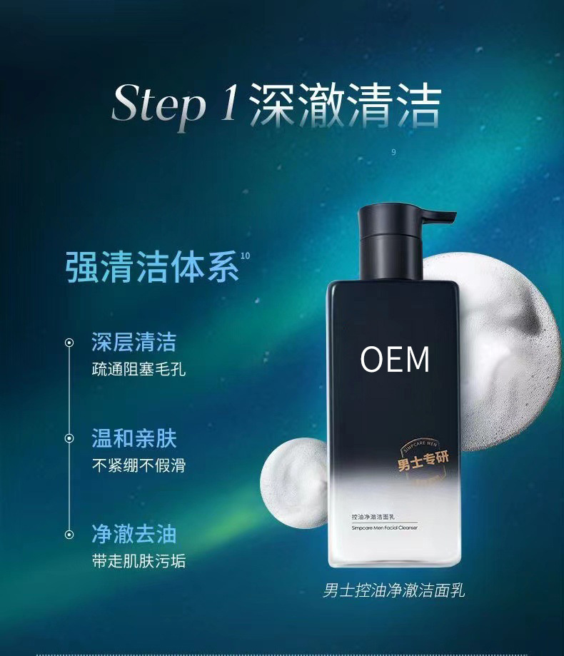 商品名称:工厂定制男士控油沁爽护肤品套装洗面奶护肤水乳三件套OEM代加工