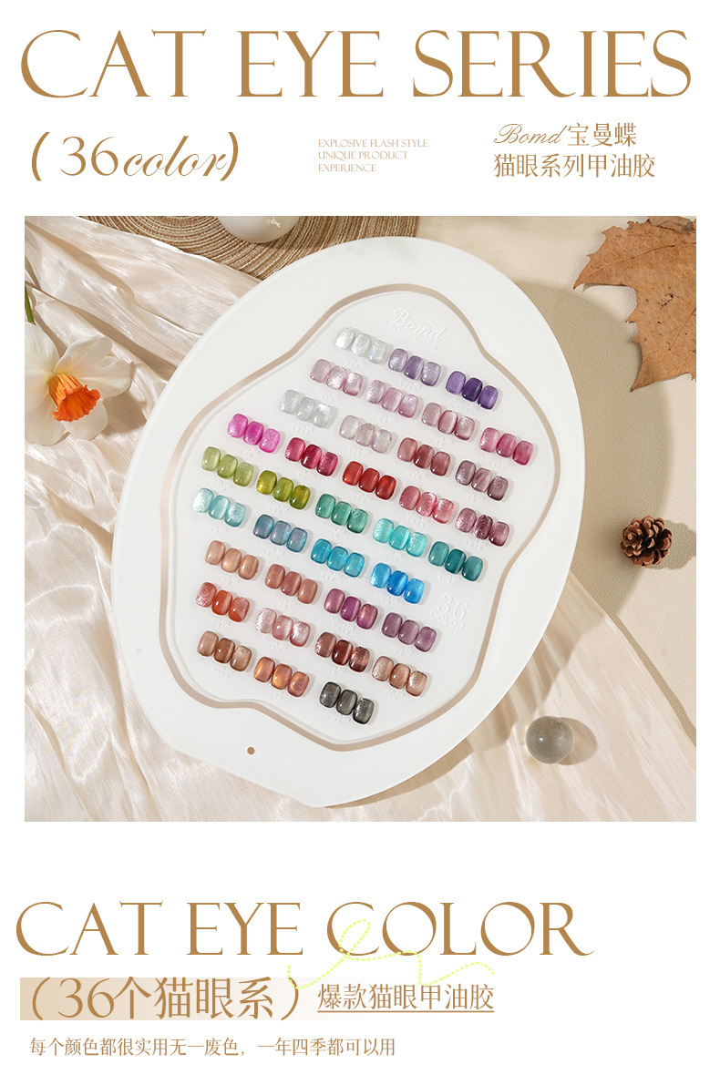 商品名称:美甲店优选宝曼蝶36色晶石猫指甲油胶爆闪猫眼灵动光疗胶全套批发