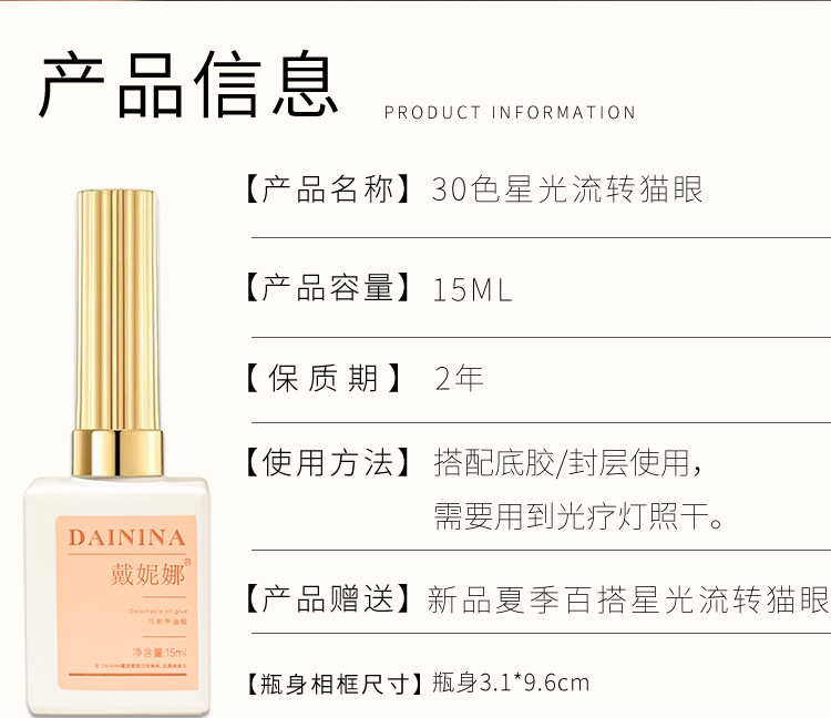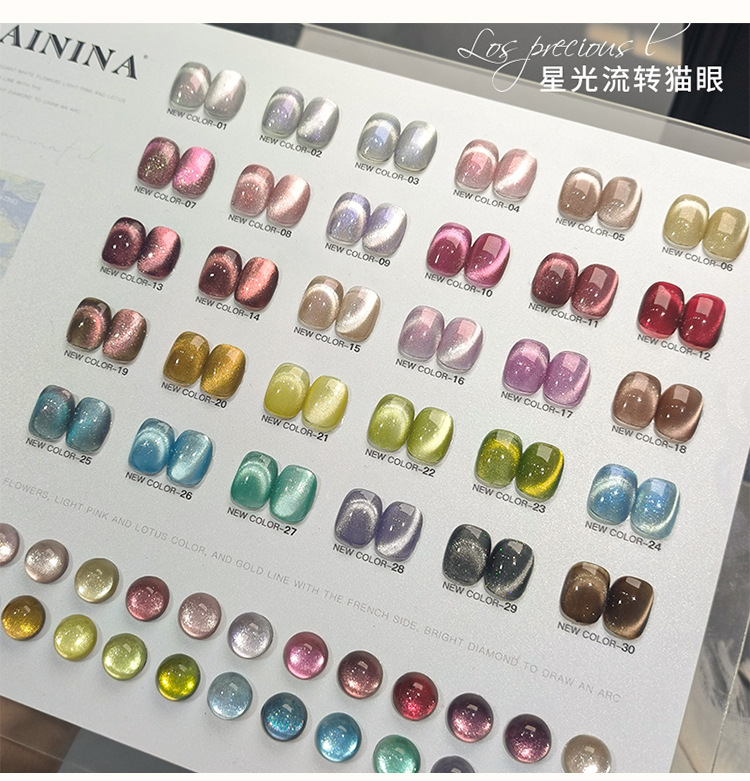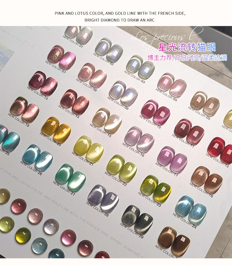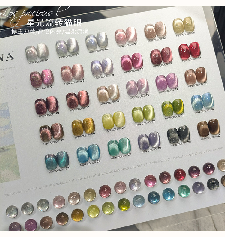 商品名称:2024年夏季流行新款30色星光流转玻璃珠猫眼指甲油美甲胶美甲专用