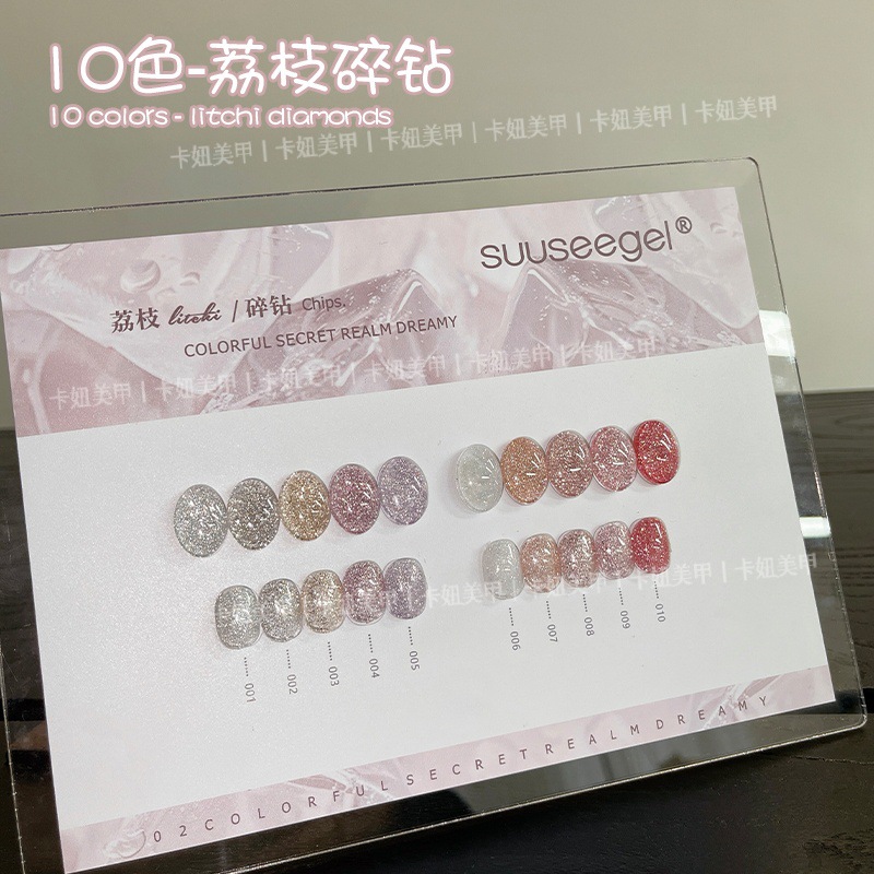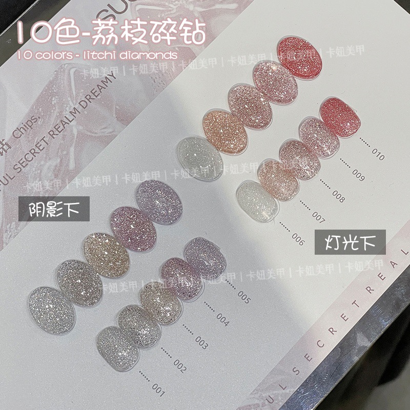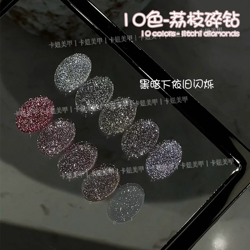 商品名称:束色新款10色荔枝碎钻套装胶初恋柔光爆闪显白流行指甲油胶美甲店
