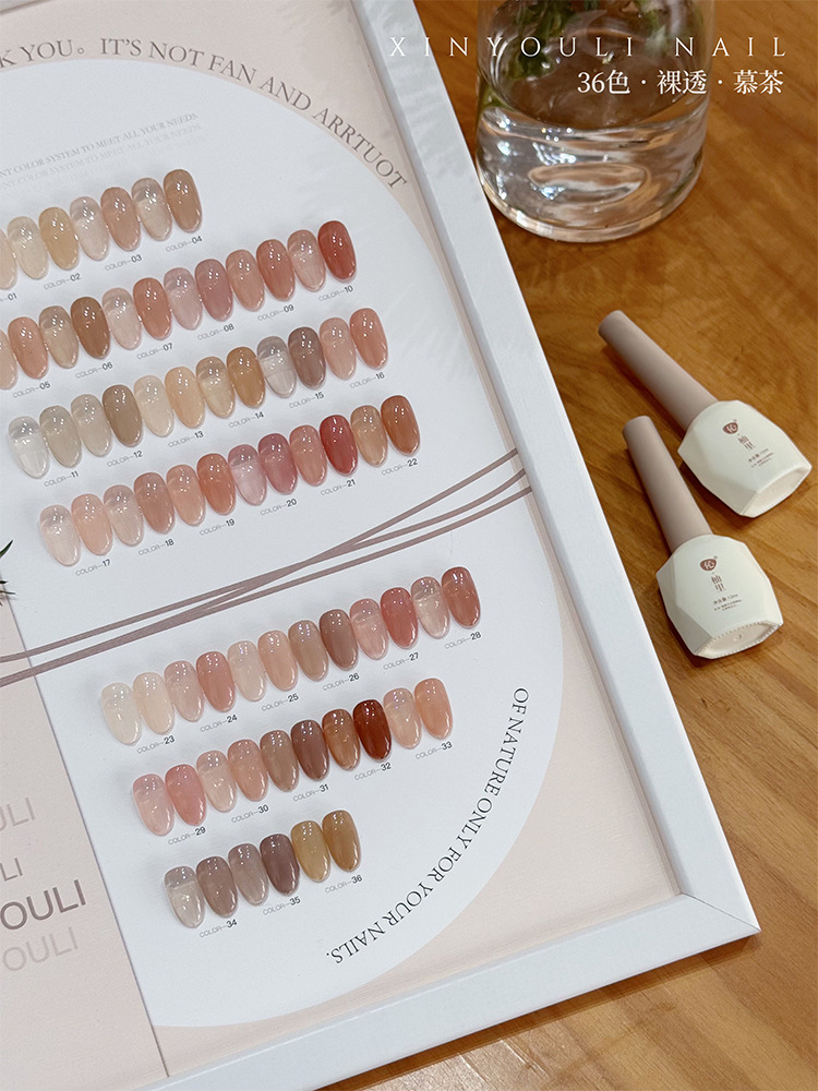 2025年美博会新款美甲店专用36色慕茶奶茶裸肤透色小套甲油