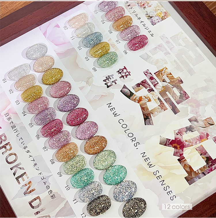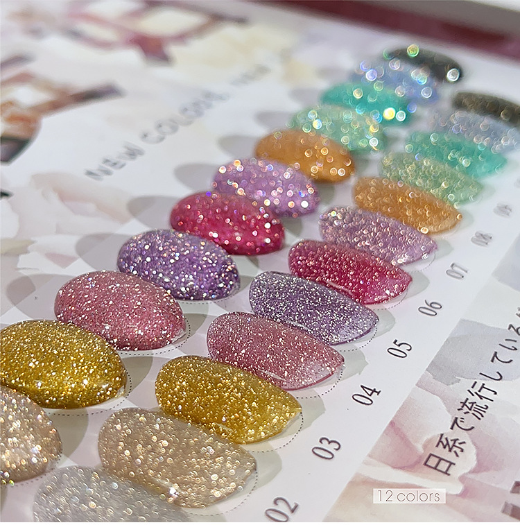 2025新款网红爆款碎钻胶美甲店用日式流行色爆闪反光碎钻指甲油胶
