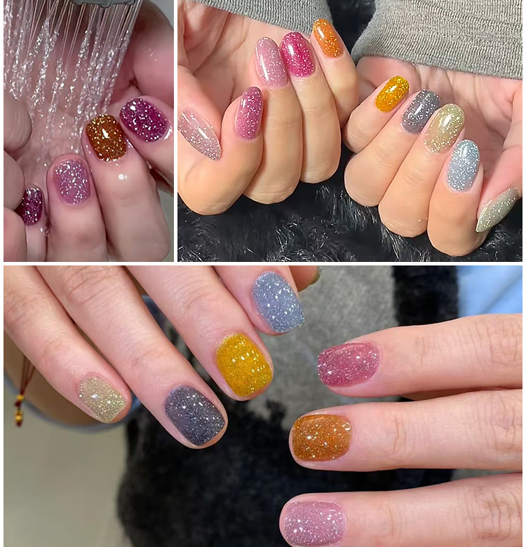 商品名称:2025新款网红爆款碎钻胶美甲店用日式流行色爆闪反光碎钻指甲油胶