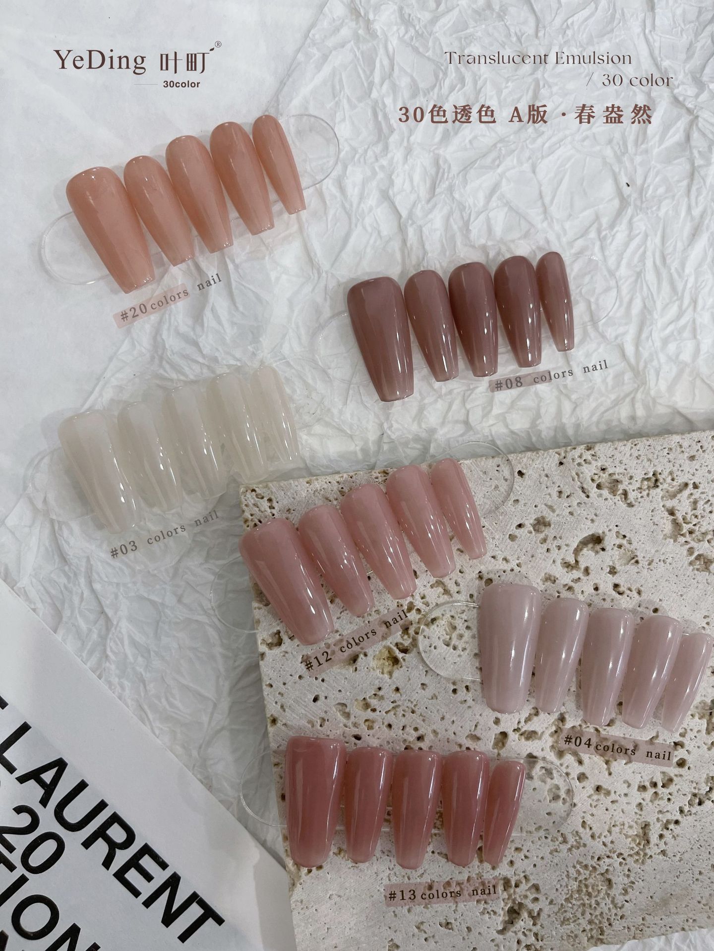 叶町指甲油胶30色春盎然透色新品甲油胶美甲一色一备持久流行套胶