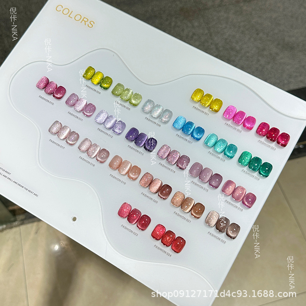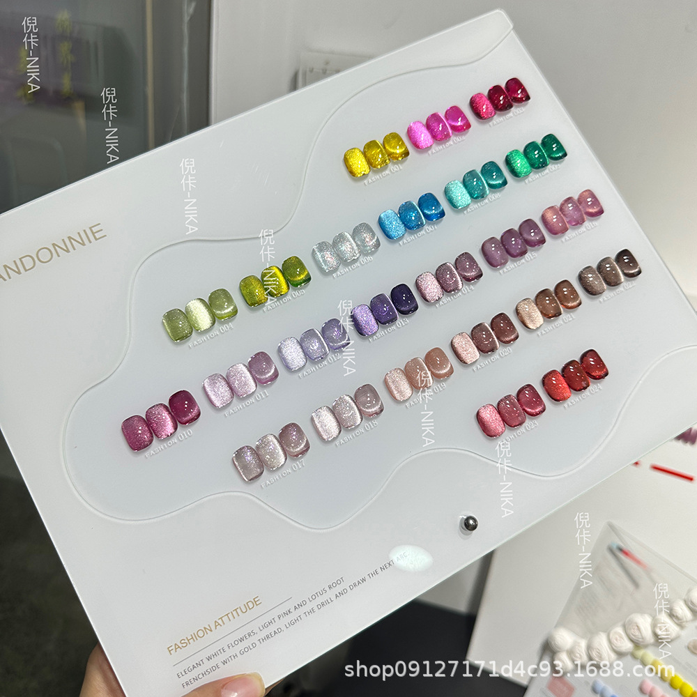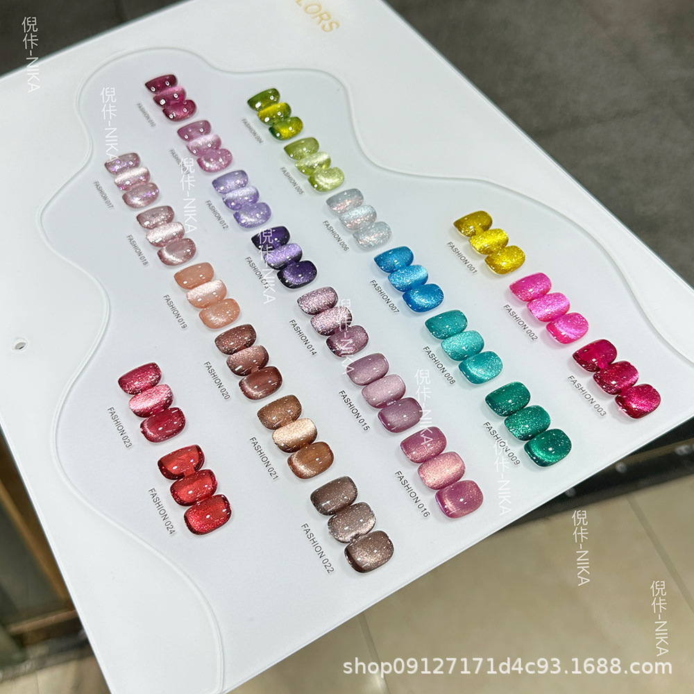 商品名称:新款玻璃珠晶石猫眼24色甲油胶流行穿戴甲美甲店专用猫眼指甲油胶