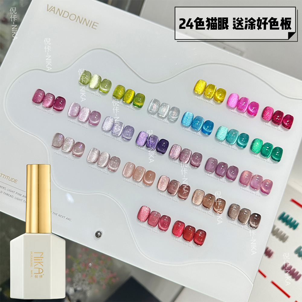新款玻璃珠晶石猫眼24色甲油胶流行穿戴甲美甲店专用猫眼指甲油胶