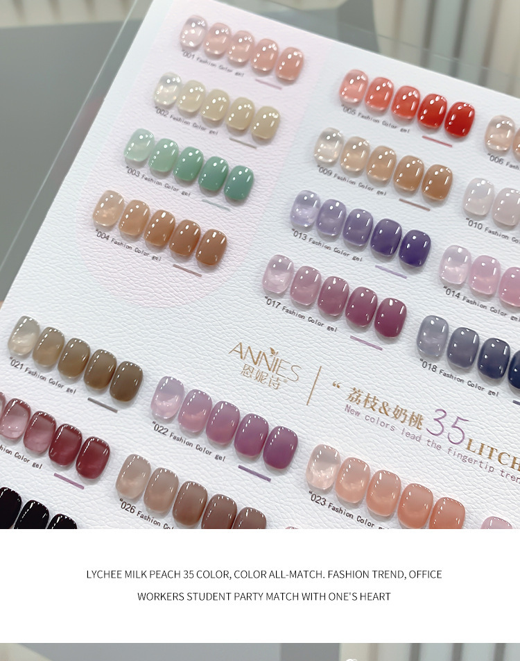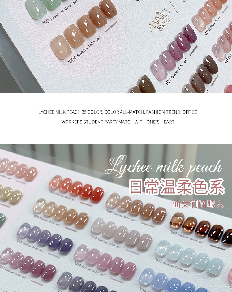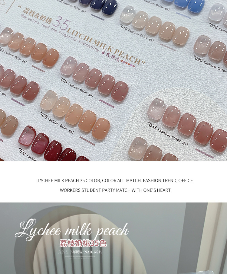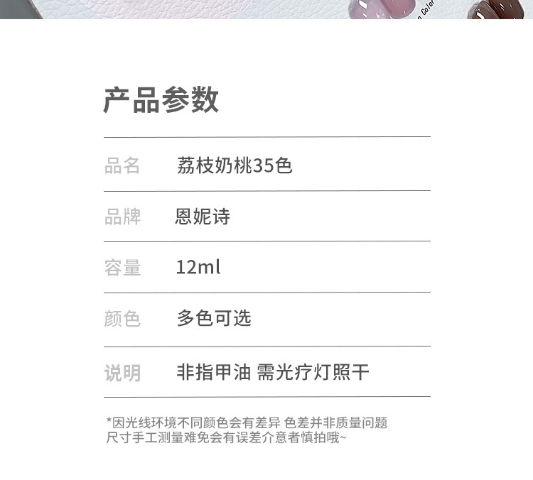 商品名称:恩妮诗冰透裸色指甲油胶2025夏季新款荔枝奶桃35色美甲店透色套胶