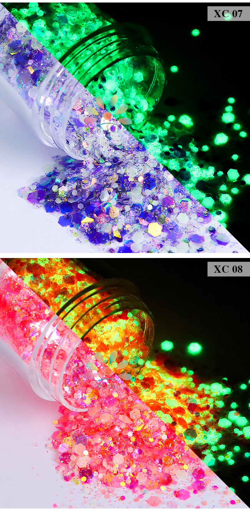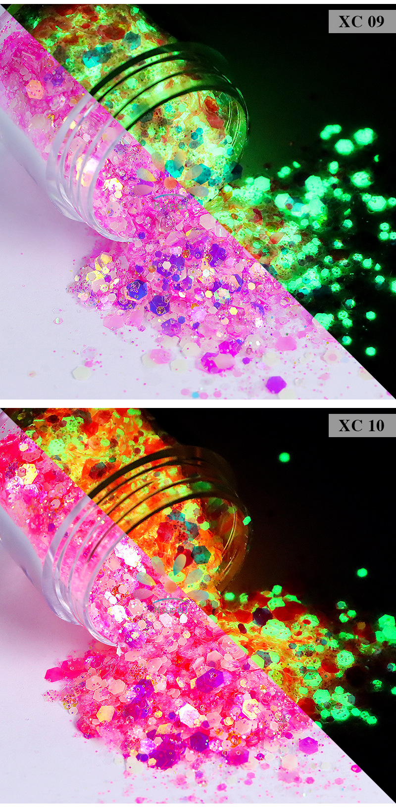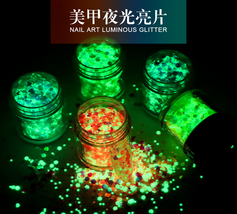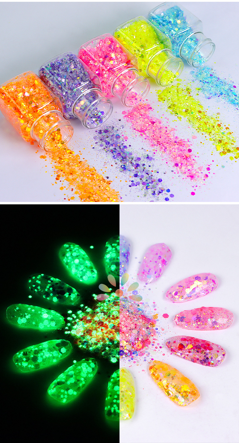 商品名称:美甲夜光亮片闪粉镭射幻彩荧光亮片滴胶史莱姆彩妆美甲闪粉批发