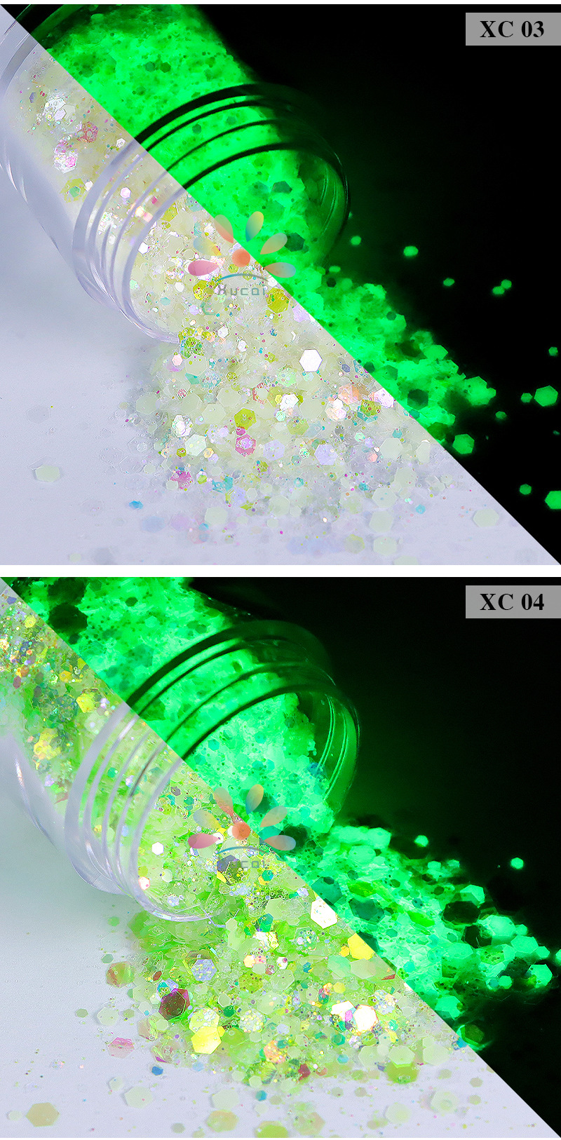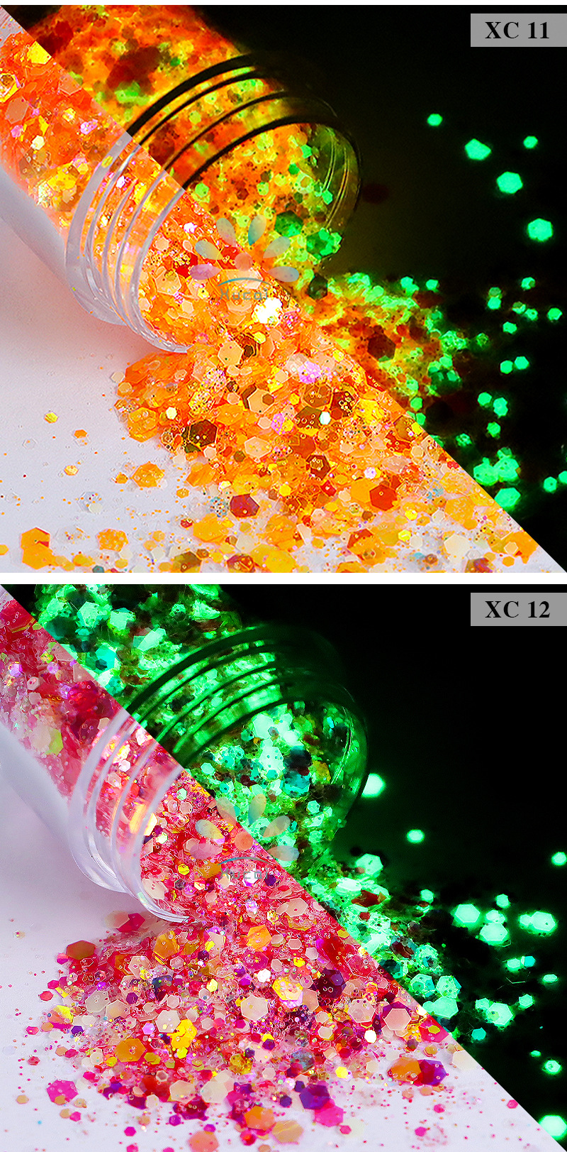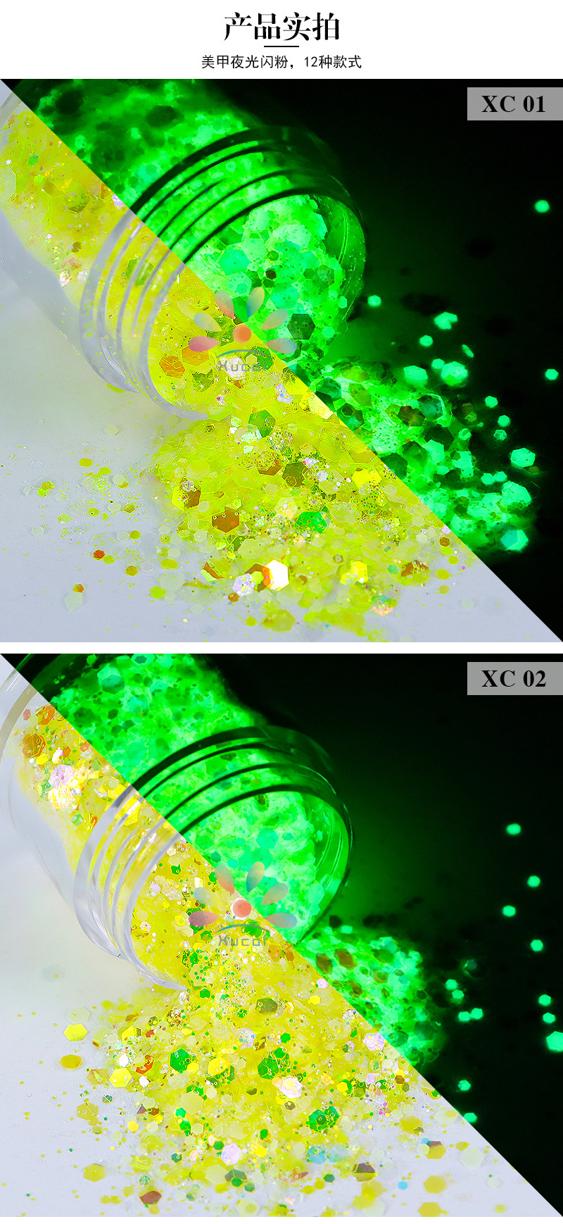 商品名称:美甲夜光亮片闪粉镭射幻彩荧光亮片滴胶史莱姆彩妆美甲闪粉批发